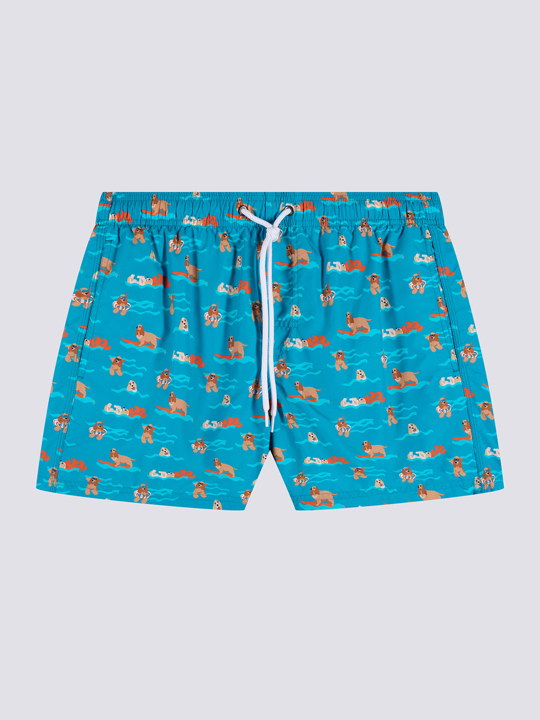 The collection includes two exclusive boardshort models: one in a solid color with an embroidered PELO patch, depicting cute little faces and a second with an all-over print inspired by six different dog breeds. Each package also includes a t-shirt, a hat and socks, all decorated with unique details, which celebrate the world of our four-legged friends.