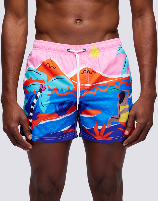 RAINBOW CHASERS REPREVE® PRINT SWIM SHORTS