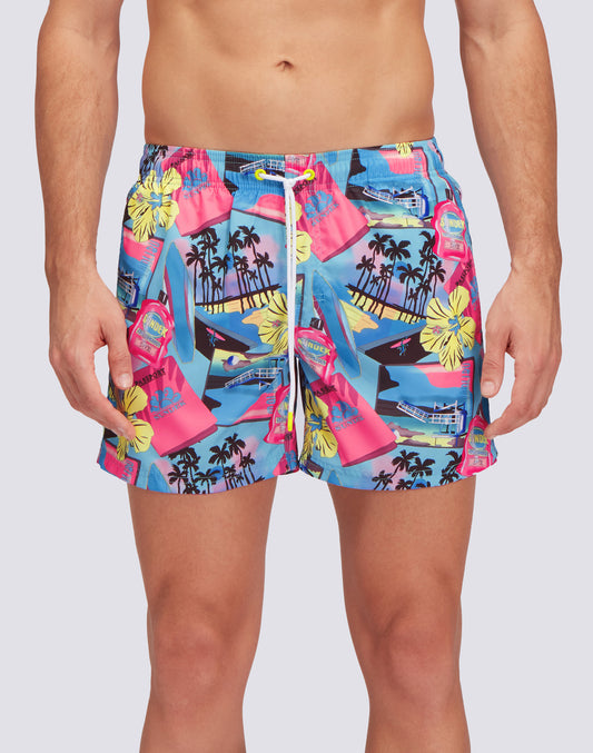 REPREVE® ELASTICATED WAIST SHORT SWIMSHORTS WITH POP 2D PRINT