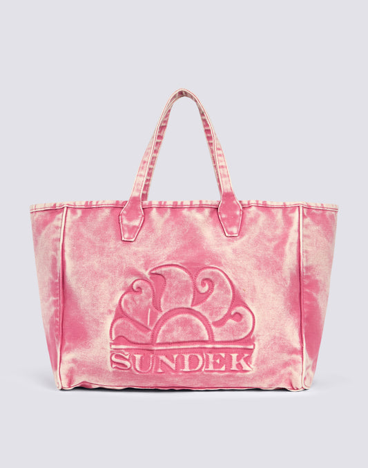 REGULAR TOTE BAG WITH STONE WASHED EFFECT AND SK23 PRINT