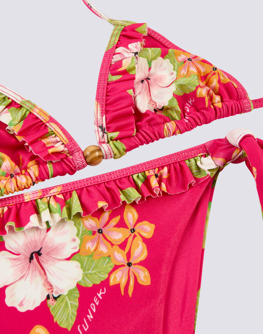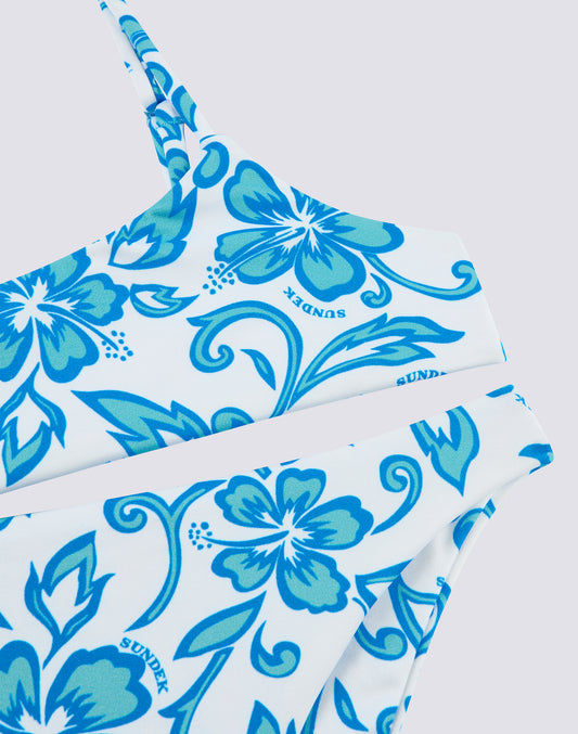 MINI BIKINI WITH RUFFLES AND LACE-UP BRIEFS IN DREAMY HAWAII PRINT