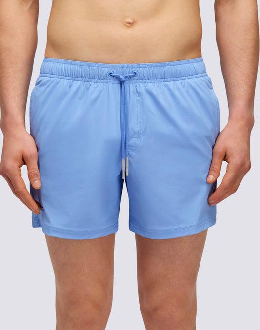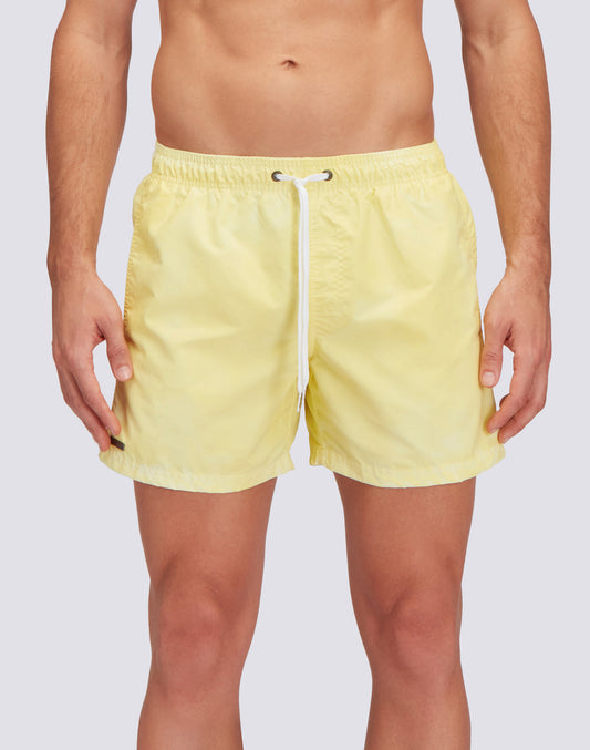 SHORT SWIM SHORTS WITH AN ELASTICATED WAISTBAND AND PATCH