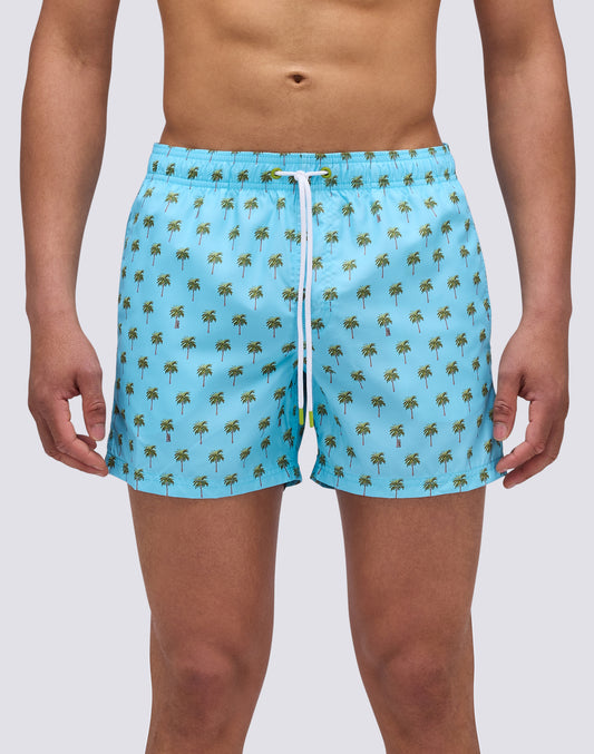 REPREVE® ELASTICATED WAIST SHORT SWIMSHORTS WITH MINI PALMS PRINT