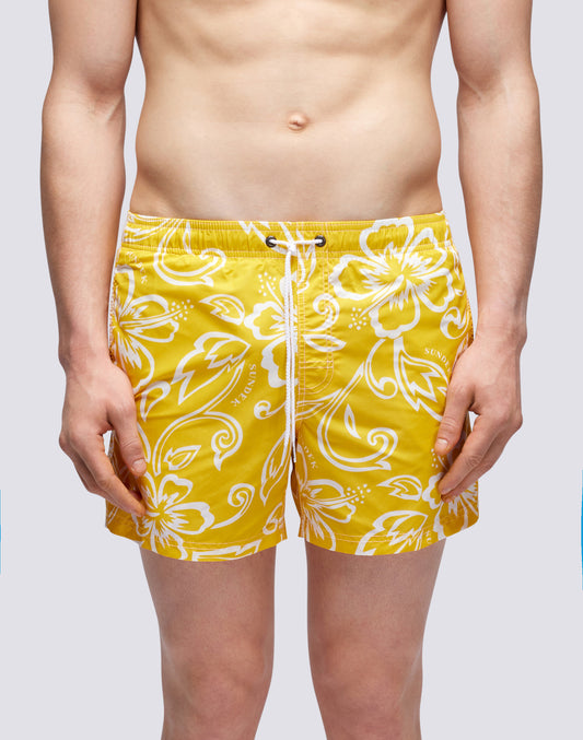 ARCHIVE HIBISCUS PRINTED SHORT SWIMSHORTS WITH ELASTIC WAIST