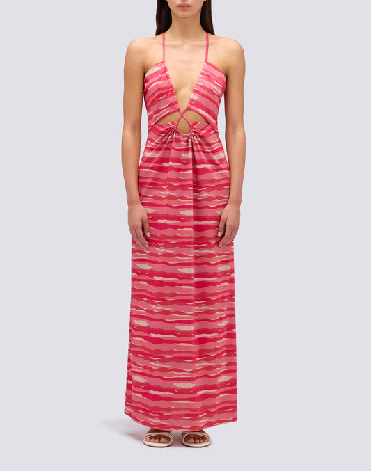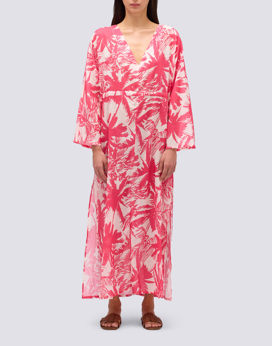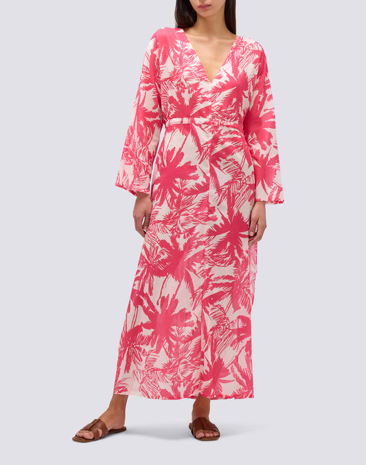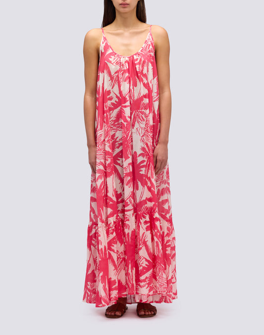 COTTON VOILE LONG DRESS WITH TROPIC SAVANNAH PRINT
