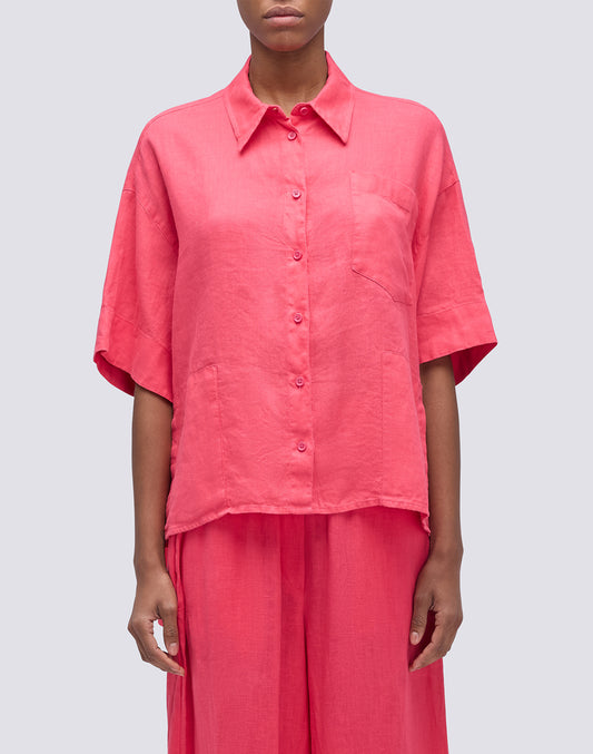 SHORT LINEN SHIRT WITH MAXI POCKET