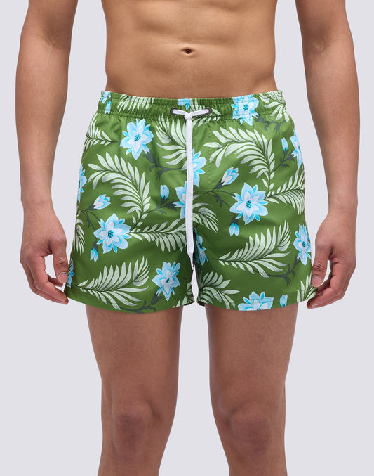 BAÑADOR CORTO DE CINTURA ELÁSTICA CON ESTAMPADO MISTY PALMS