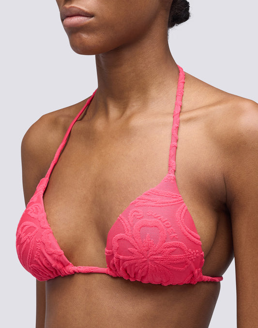 JENNIFER - TOP TRIANGULAR DE RIZO CON LAZOS AJUSTABLES Y MOTIVO SK23