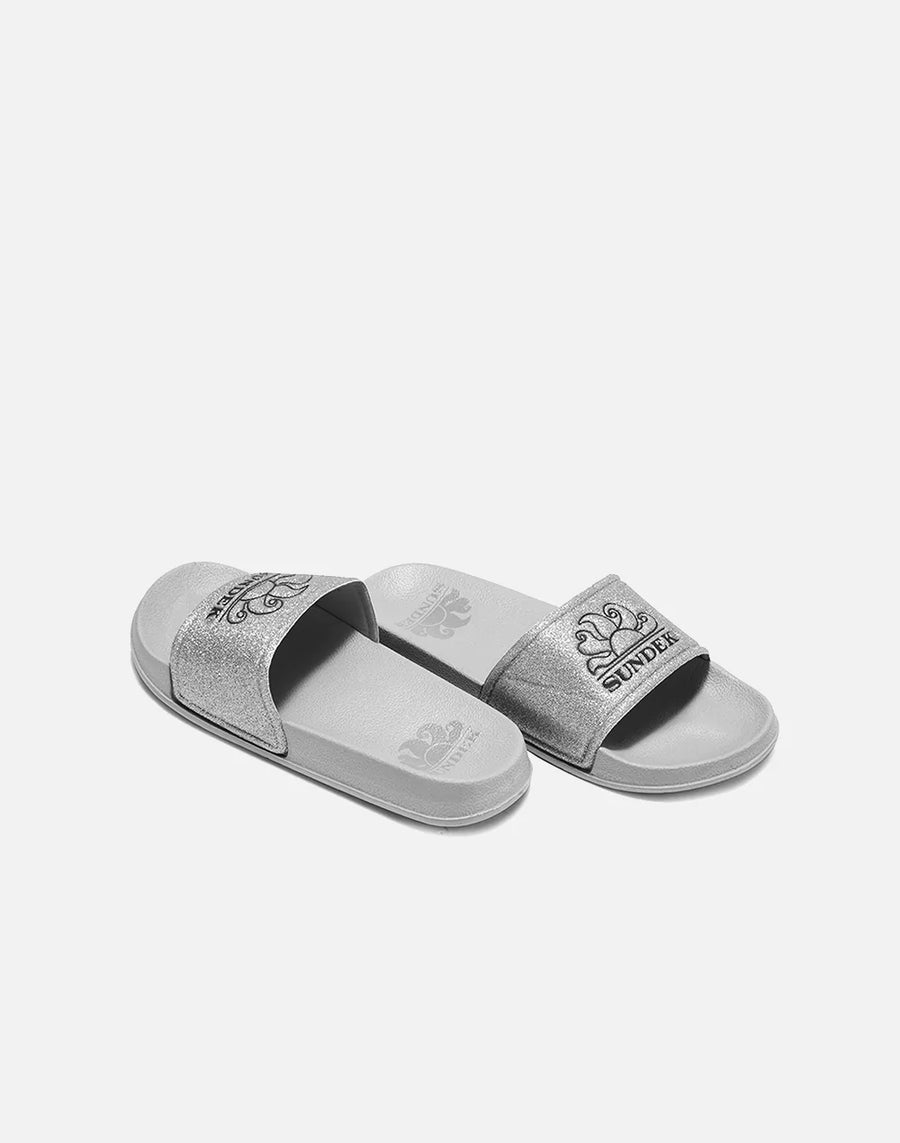 Chanclas de playa para niña súper cómodas, perfectas para la playa y para llevar todo el verano en muchas ocasiones diferentes, con el toque añadido del efecto purpurina brillante de la tira. Altura de la suela de 1 a 3 cm.