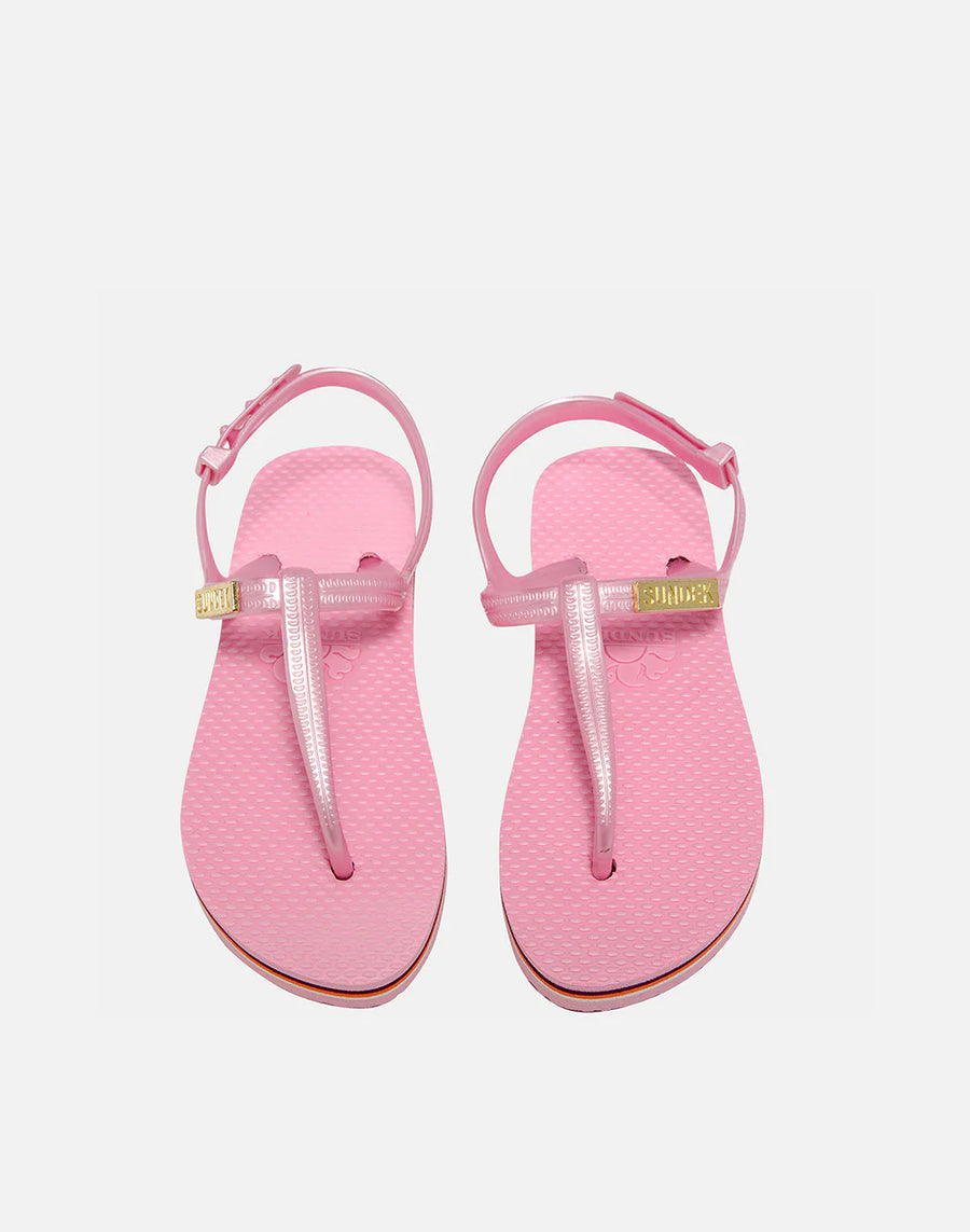 Chanclas perfectas para que las niñas estén listas para la playa de inmediato, completadas con el detalle multicolor insertado en la mochila escolar y el cierre ajustable.