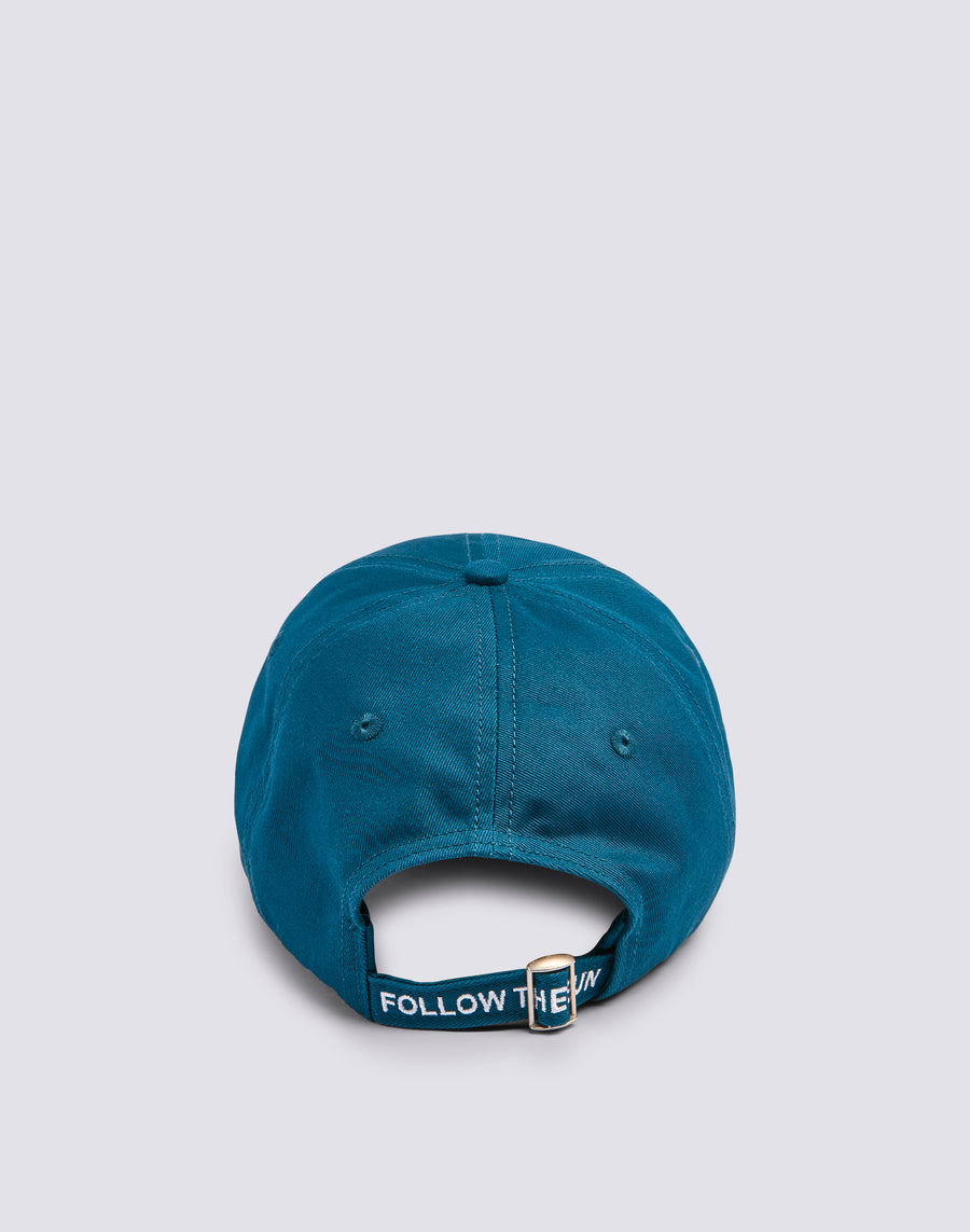 Back closure with adjustable strap and FOLLOW THE SUN writing