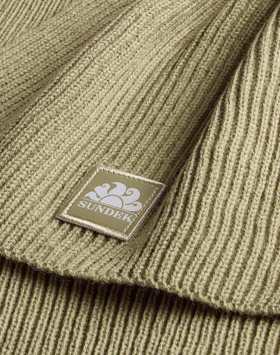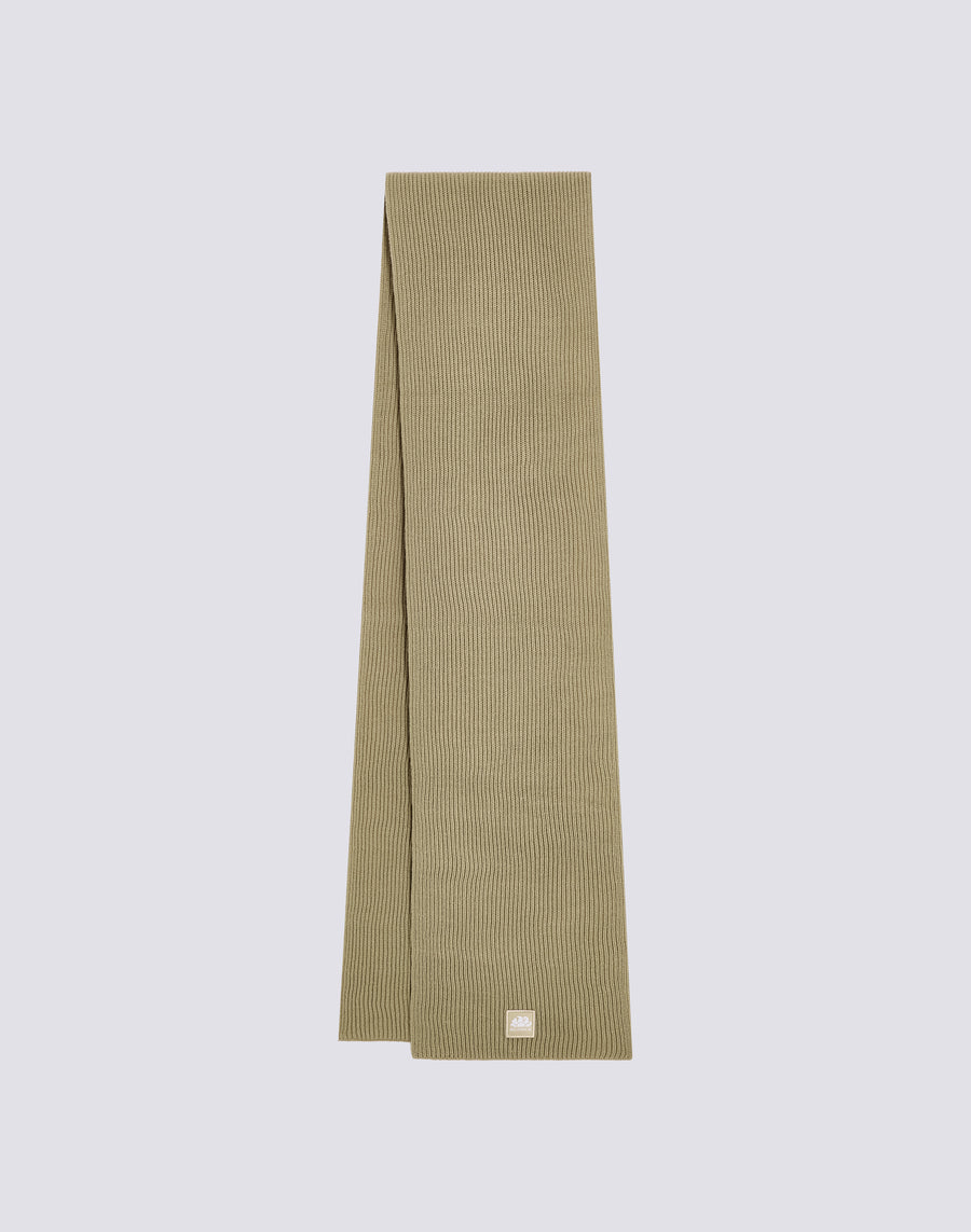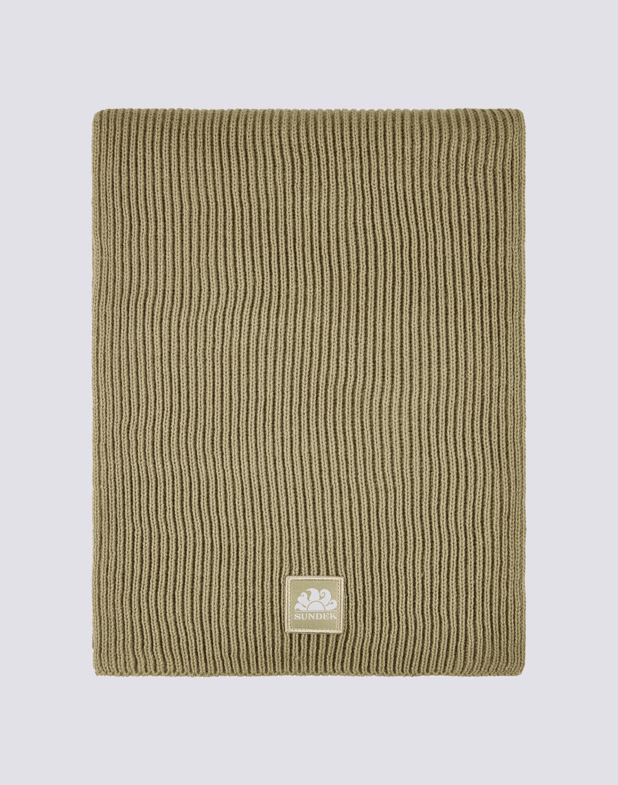 Bufanda básica de canalé lisa con parche.