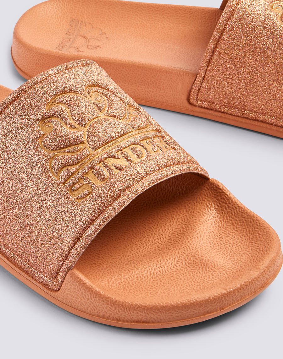 Chanclas de playa con tiras efecto purpurina, para la playa, la piscina y para todas las ocasiones en las que no quieras renunciar a la comodidad y el estilo. Altura de la suela 1 - 3 cm