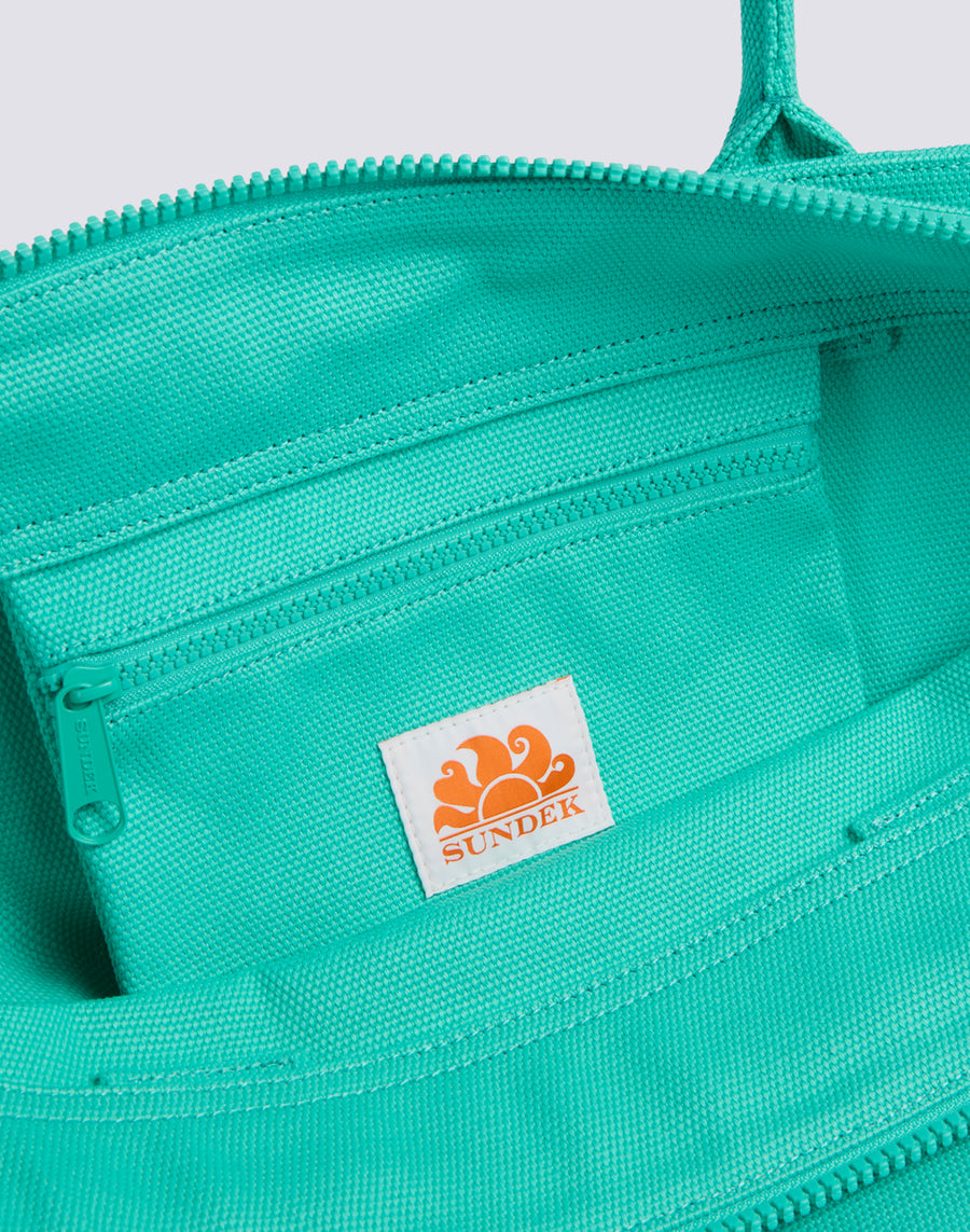 Logotipo y eslogan de Sundek impresos en contraste en la parte delantera