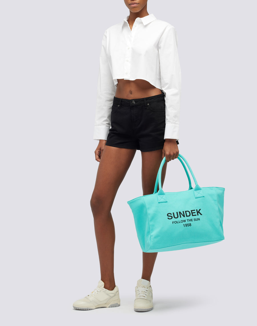 Un bolso shopper con un look deportivo y chic, fácil de combinar con cualquier atuendo informal, perfecto por su practicidad para llevar todo lo que necesitas en tus actividades diarias. No está forrado y tiene un bolsillo interior para encontrar rápidamente los objetos que quieres tener a mano.