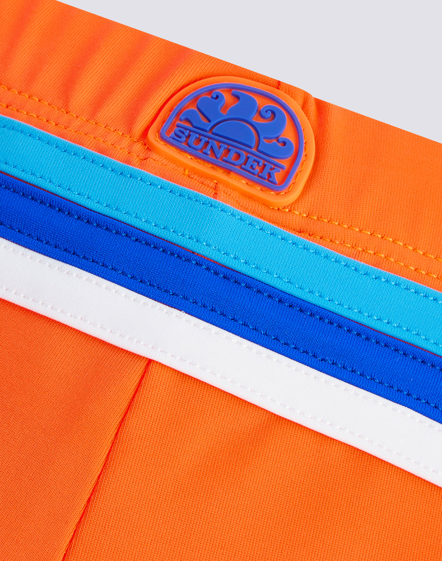 El bóxer de baño para niño que se centra por completo en el color y no se olvida del medio ambiente, porque está fabricado en nailon regenerado ECONYL®. Cómodo gracias a la cintura elástica y al cordón ajustable, es el bañador que tu hijo puede llevar fácilmente para jugar y nadar.