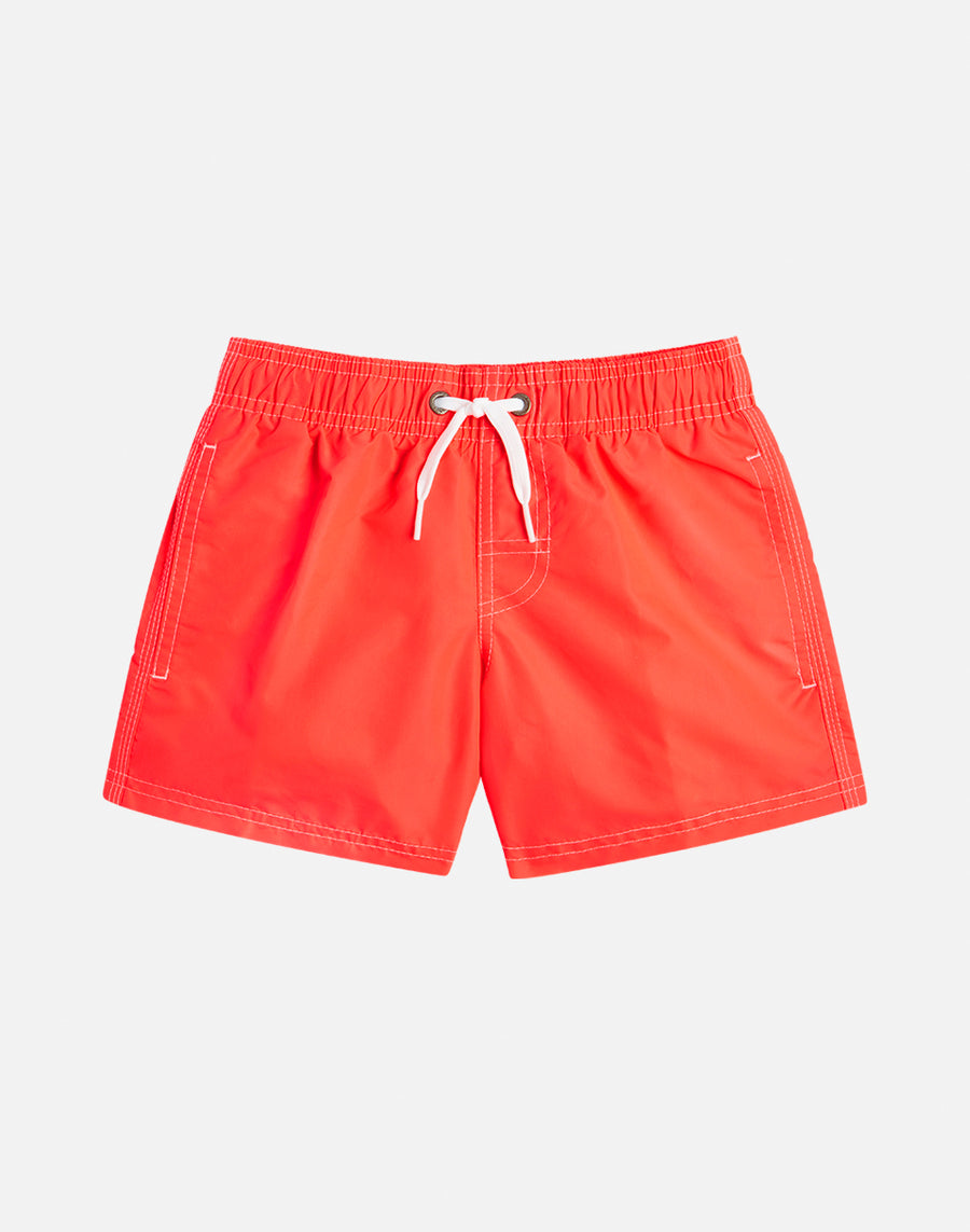 Color intenso y tejido ultracómodo y de secado rápido para este short de playa para niño. Un modelo que acompañará a tu hijo en sus múltiples actividades en vacaciones, perfecto para moverse y jugar libremente. Está confeccionado con nuestra tela de tafetán de nailon tradicional y está construido con costuras de tres agujas que lo hacen duradero con el tiempo. Para empacar, año tras año.