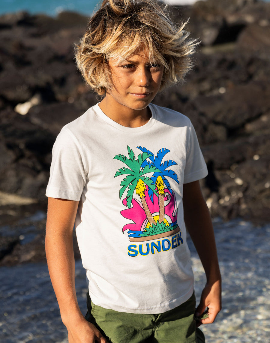 Renueva el guardarropa de tus hijos con la CAMISETA DE MANGA CORTA CON ESTAMPADO SUNDEK ISLAND. Confeccionada con un suave punto de algodón, esta camiseta presenta un divertido estampado de Sundek Island. Perfecto para un verano lleno de aventuras