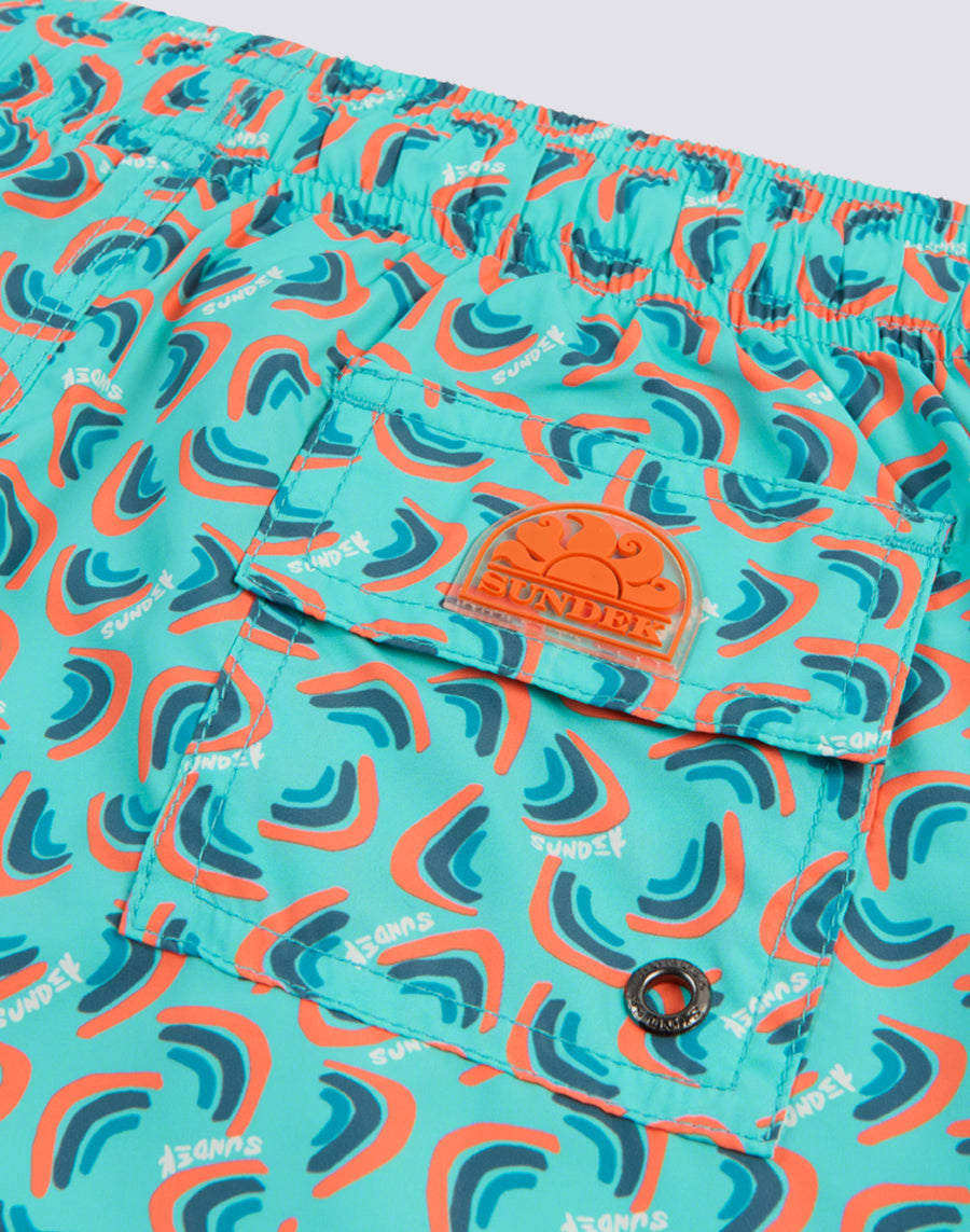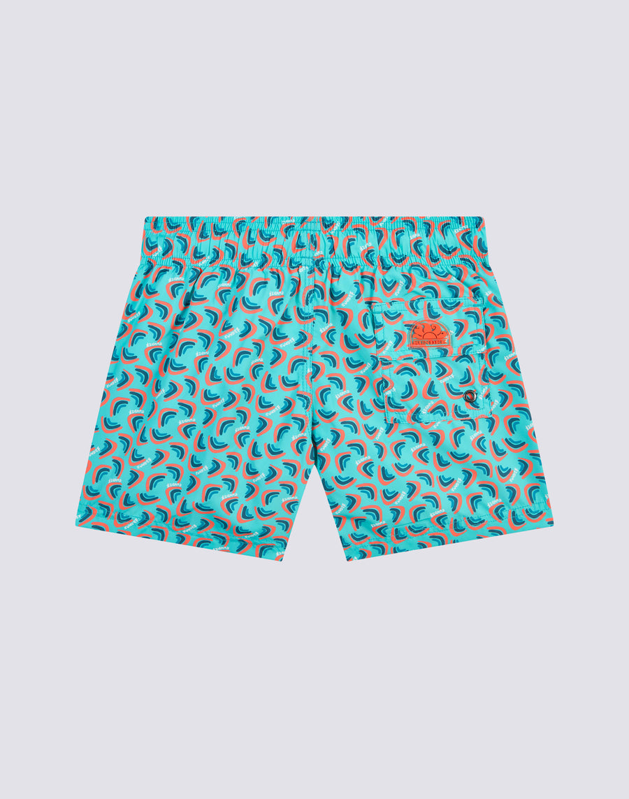 BAÑADOR CORTO CON ELÁSTICO EN LA CINTURA CON ESTAMPADO DE ARCOIRIS EN POLY RECICLADO