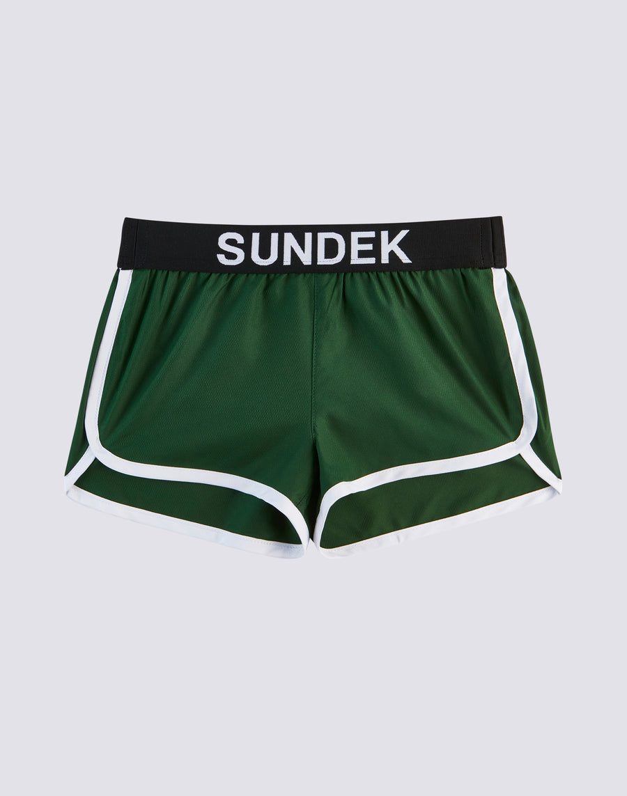 Unos shorts ligeros con logotipo Sundek, perfectos para llevar sobre el bañador. Fáciles de poner, con un tejido ligero y cómodo, acompañarán a tu hija de la playa a los juegos de verano.