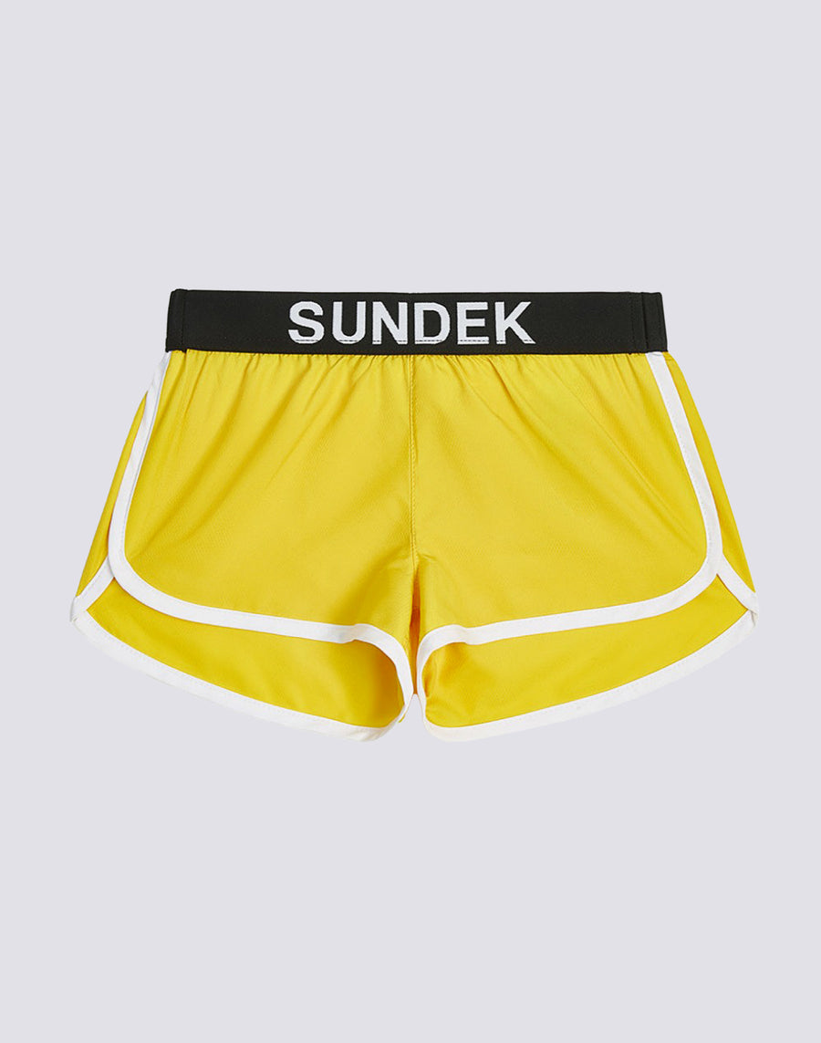 Unos shorts ligeros con logotipo Sundek, perfectos para llevar sobre el bañador. Fáciles de poner, con un tejido ligero y cómodo, acompañarán a tu hija de la playa a los juegos de verano.