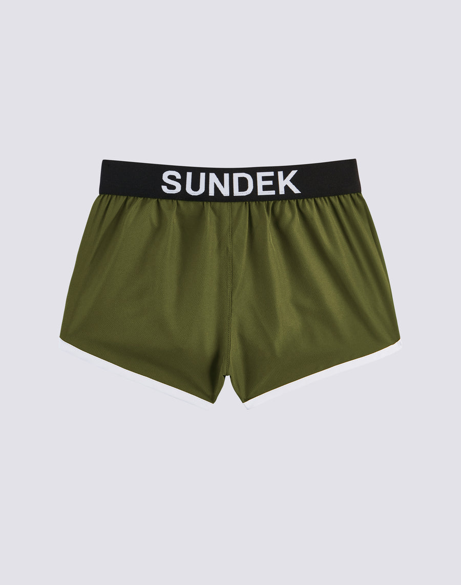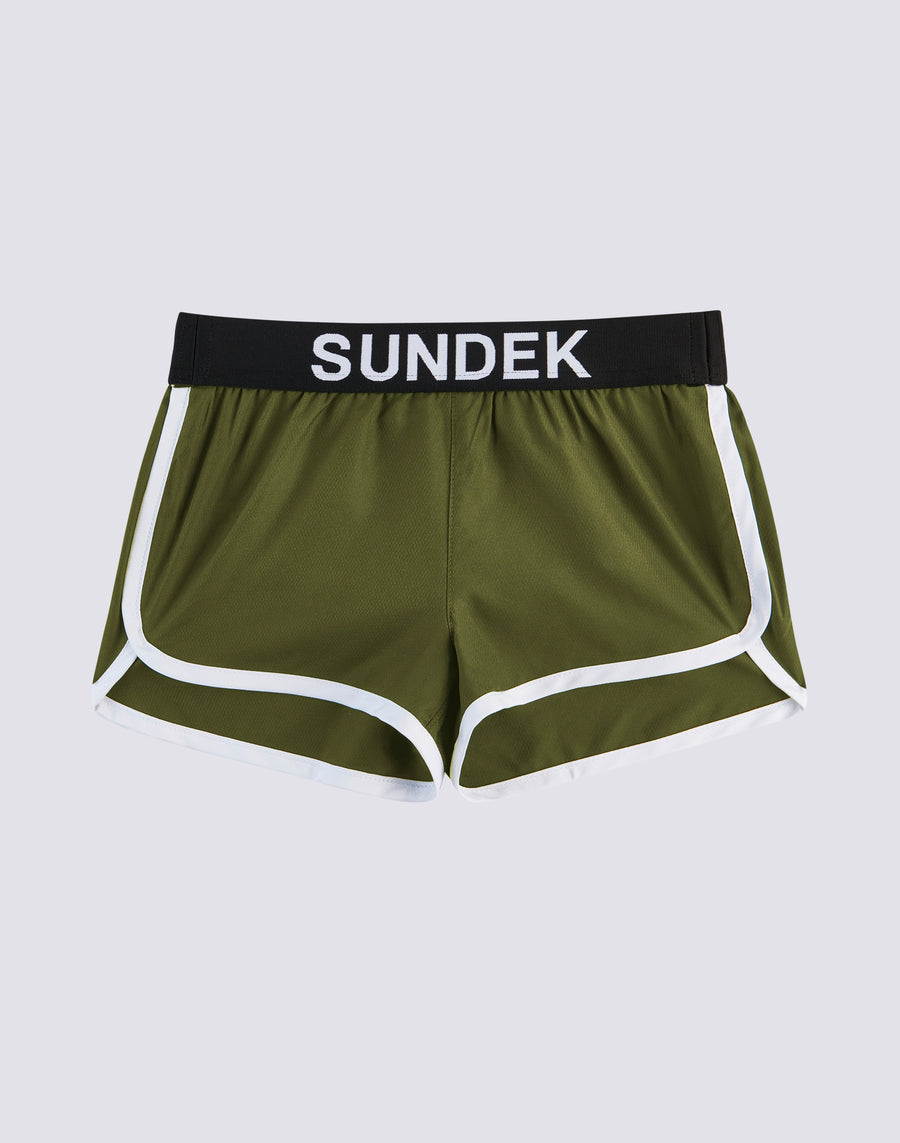 Unos shorts ligeros con logotipo Sundek, perfectos para llevar sobre el bañador. Fáciles de poner, con un tejido ligero y cómodo, acompañarán a tu hija de la playa a los juegos de verano. Ajuste regular. Longitud 16 cm (talla 6) medida en el lateral exterior.