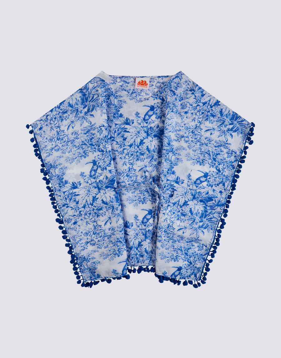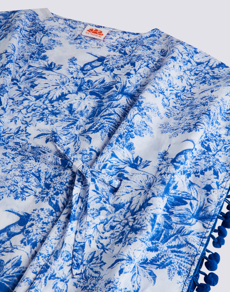 Este caftán para niña es perfecto para un look refinado y elegante. Estampado con un motivo toile de jouy, la hará sentirse romántica y a la moda. Ideal para ocasiones especiales o simplemente para darle un toque de clase en los días de playa.