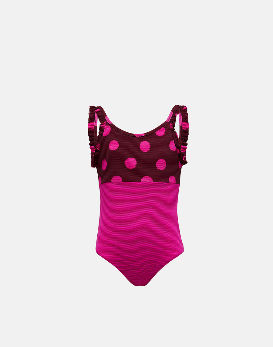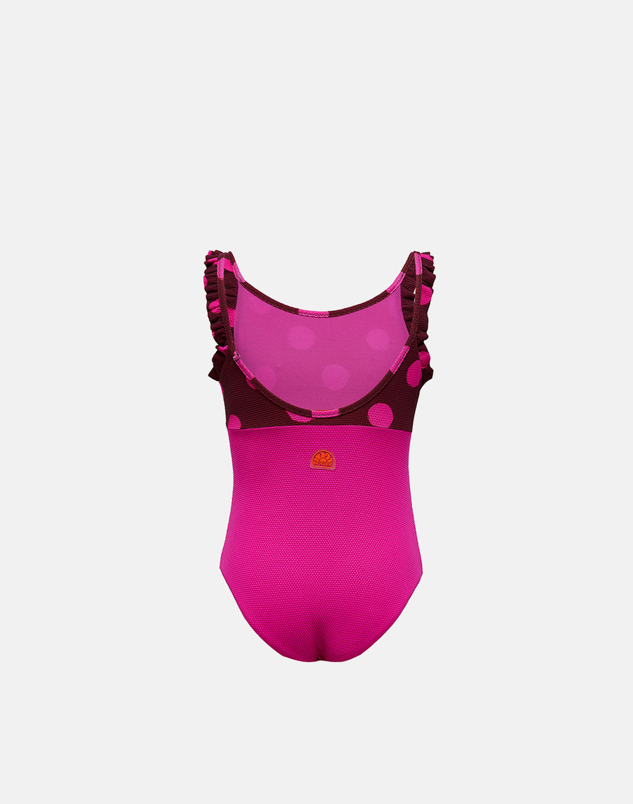 Para las más jóvenes que aman los trajes de baño de una pieza capaces de casar el corte regular con un carácter súper moderno. Este bañador de una pieza combina el alegre estampado Dandelion con el efecto ondulado y tridimensional del tejido ecosostenible Renew Wave by Carvico: los tirantes rematados con volantes completan una prenda ideal para las chicas más jóvenes a las que les encanta combinar comodidad y estilo.