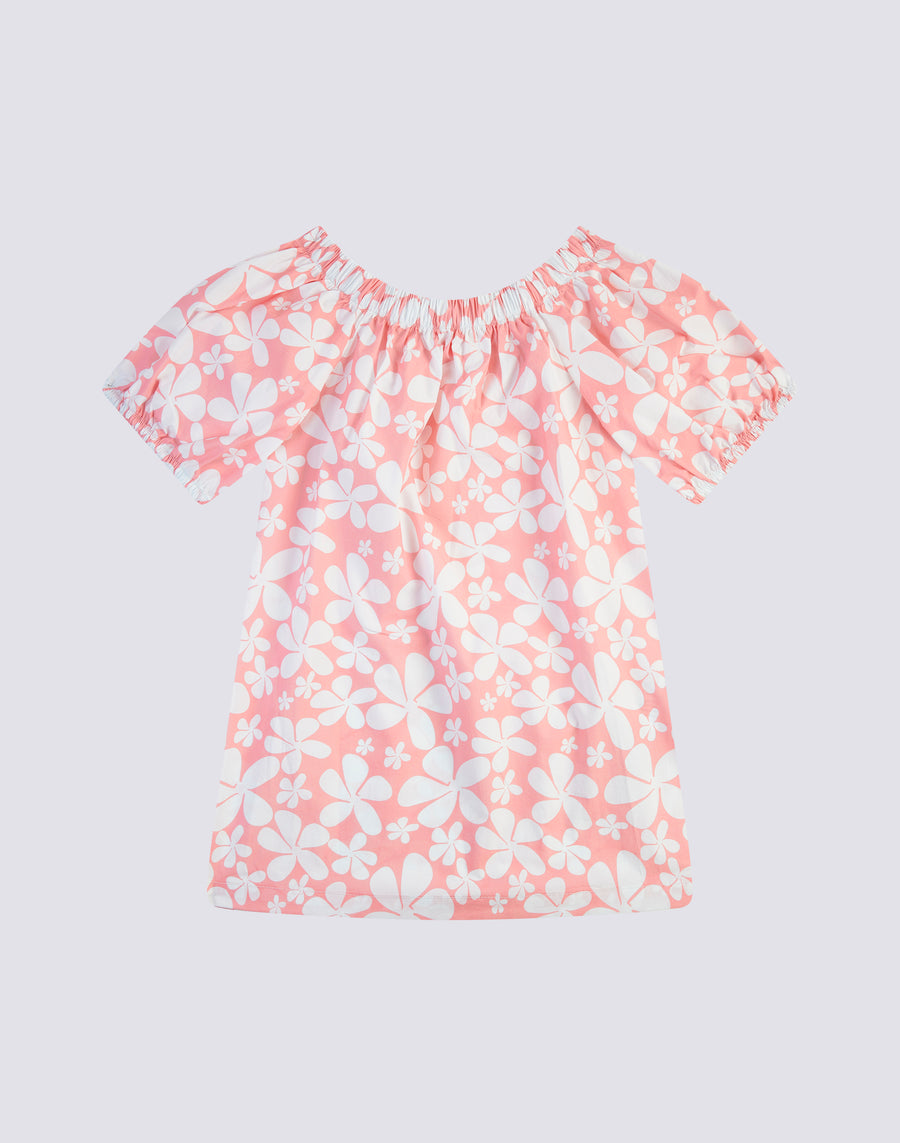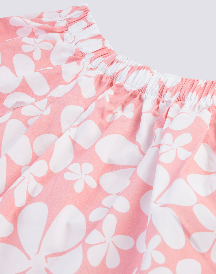 Bonito vestido de niña con estampado de flores rodantes. Ligero, fresco y elegante, es adecuado para ocasiones formales como veladas, ceremonias, eventos. Delicado estampado y color suave para un modelo imprescindible.