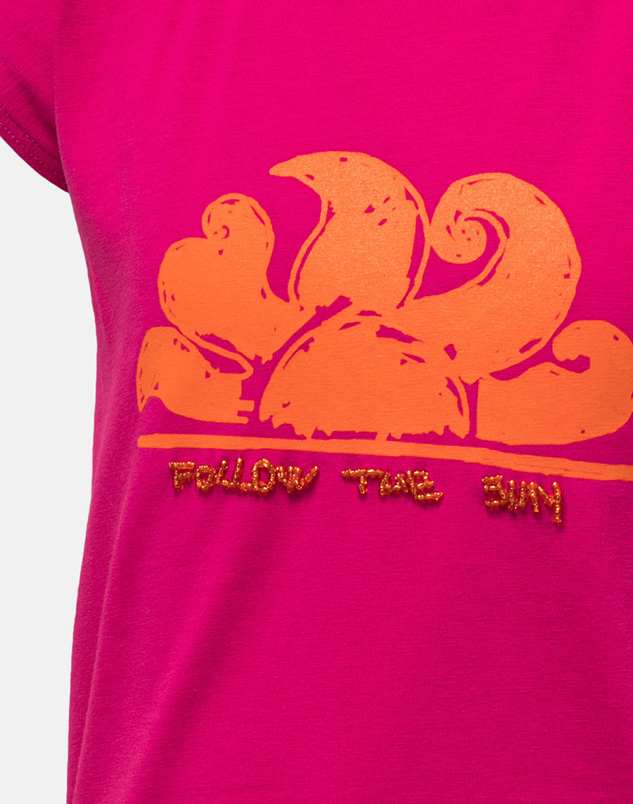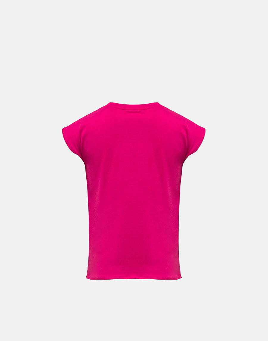 Una camiseta divertida y versátil para llevar todo el verano con muchas prendas diferentes: sin mangas, de corte cropped y con nudo central y logotipo Sundek central bordado con cuentas.