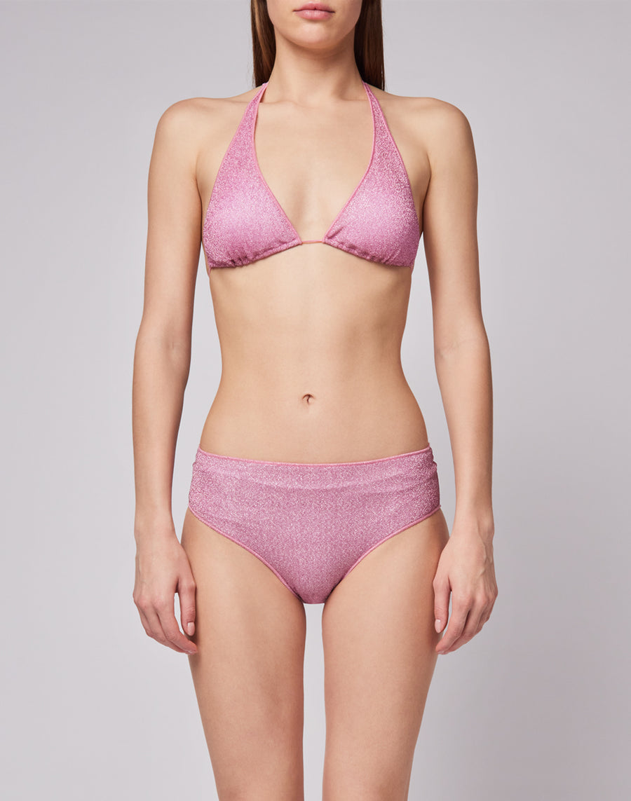 64% POLYAMIDE 36% ELASTANE Shiny lurex fabric, comfortable and with lining that guarantees soft contact with the skin.