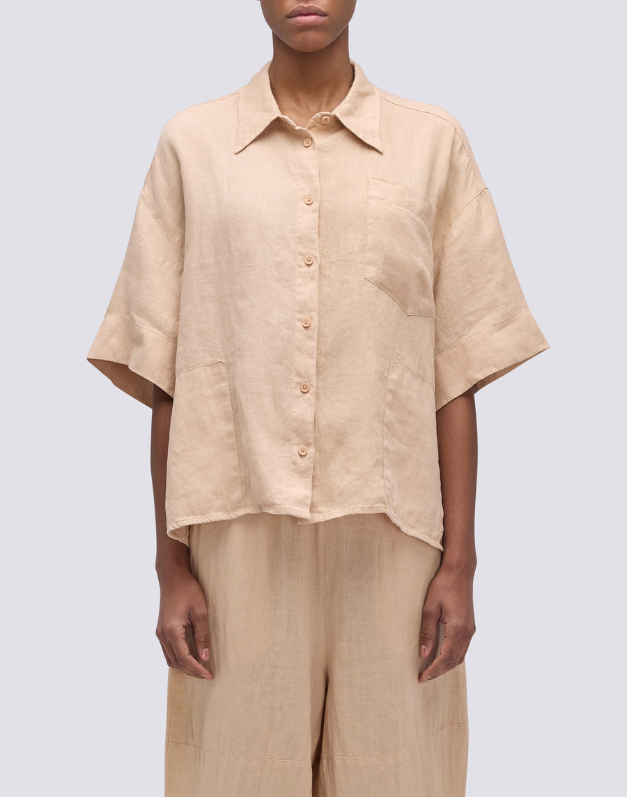 CAMISA DE LINO TEÑIDA EN PRENDA