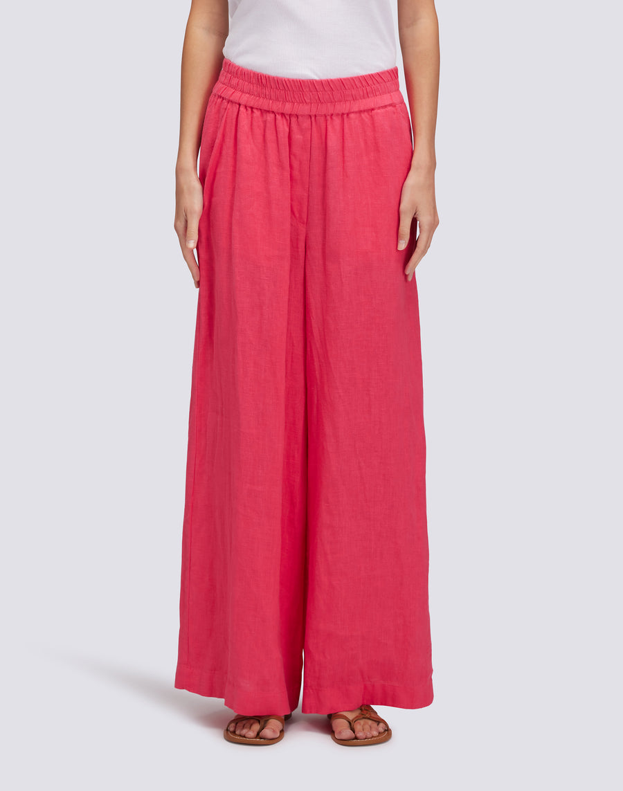 PANTALÓN PALAZZO LARGO DE LINO TEÑIDO EN PRENDA