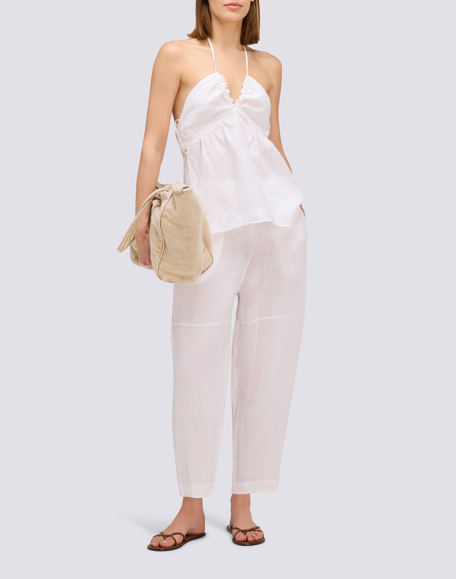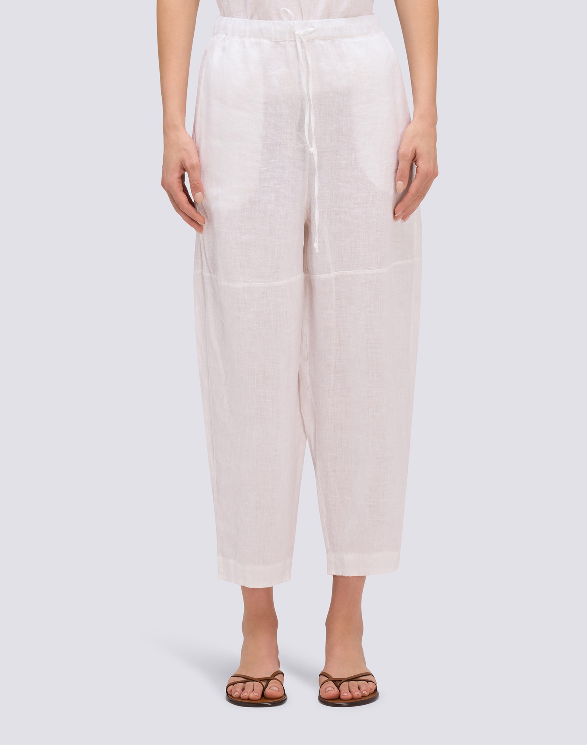 PANTALÓN LARGO DE LINO CON CINTURA ELÁSTICA AJUSTABLE
