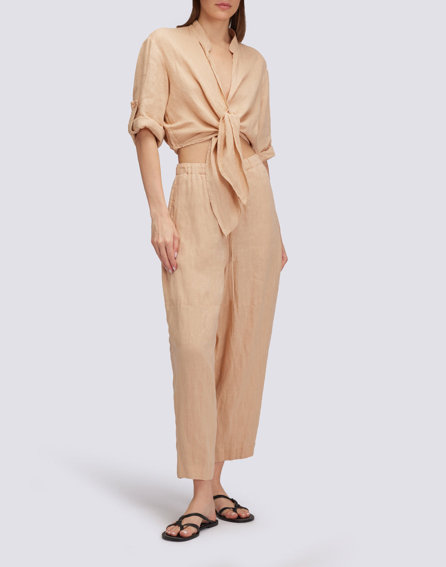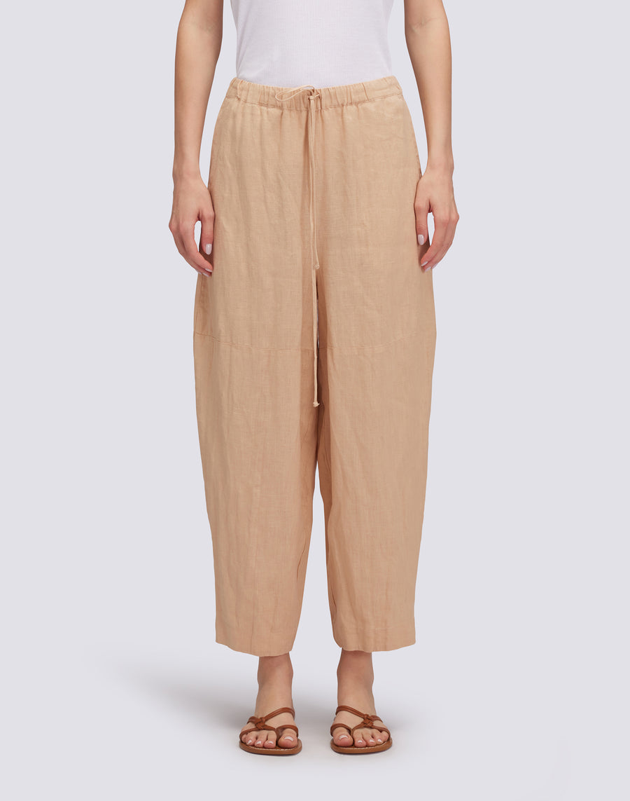 PANTALÓN LARGO DE LINO CON CINTURA ELÁSTICA AJUSTABLE