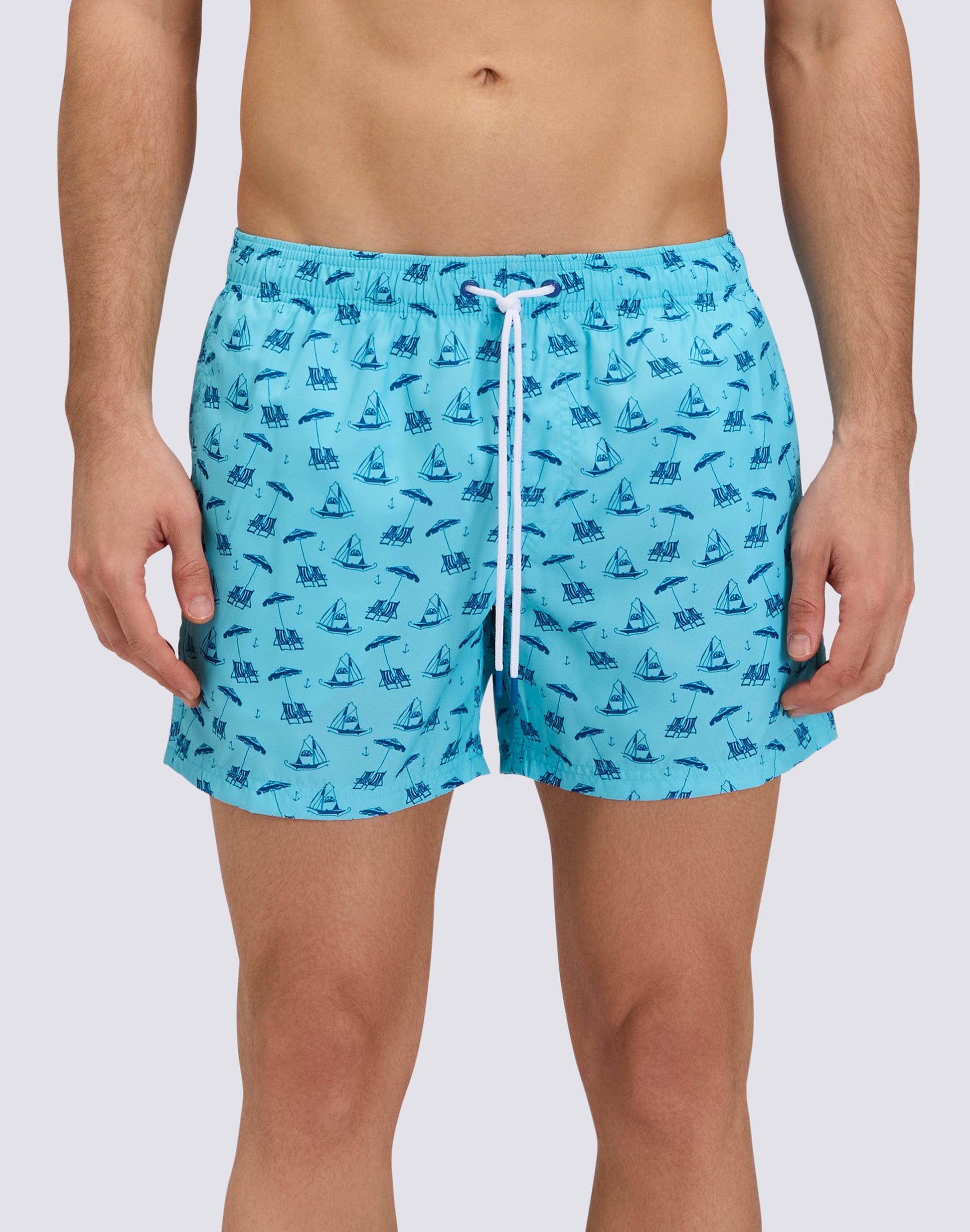 REPREVE® TRAJE DE BAÑO CORTO CON CINTURA ELÁSTICA Y GREETINGS FROM MEXICO ESTAMPADO