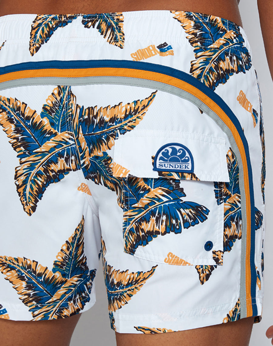 Un espíritu verde y el icónico arco iris de Sundek en la espalda hacen de este bañador un imprescindible de la ropa de playa: fabricado con tejido reciclado REPREVE®, obtenido mediante la reutilización de botellas de plástico, este bañador es ligero, duradero y se seca rápidamente.