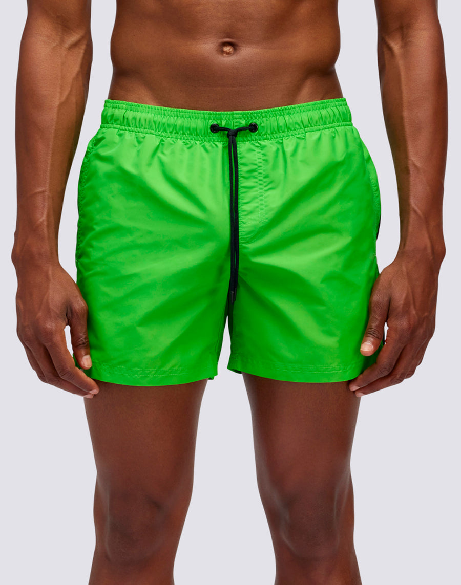 Bañador corto de hombre con cintura elástica, cordón de ajuste y el icónico arco iris de Sundek en la espalda en versión oscura. Este bañador está confeccionado con costura a tres agujas y 100% con nuestro tejido histórico, nylon-taffeta: suave como la seda, ligero y resistente a todo, se seca rápido para ofrecerte comodidad en todas partes, en las olas y fuera del agua. Longitud 35 cm (talla M), medida en el exterior de la pierna.
