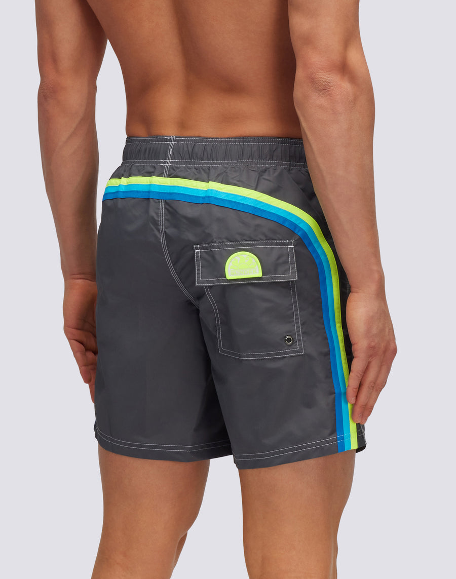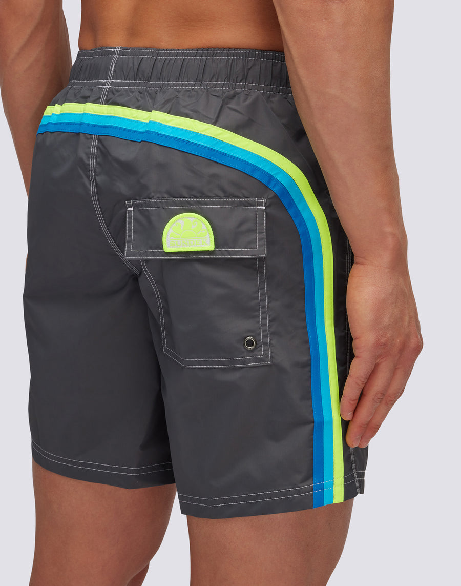 BAÑADOR ICÓNICO DE TAFETÁN DE LARGO MEDIO CON CINTURA ELÁSTICA
