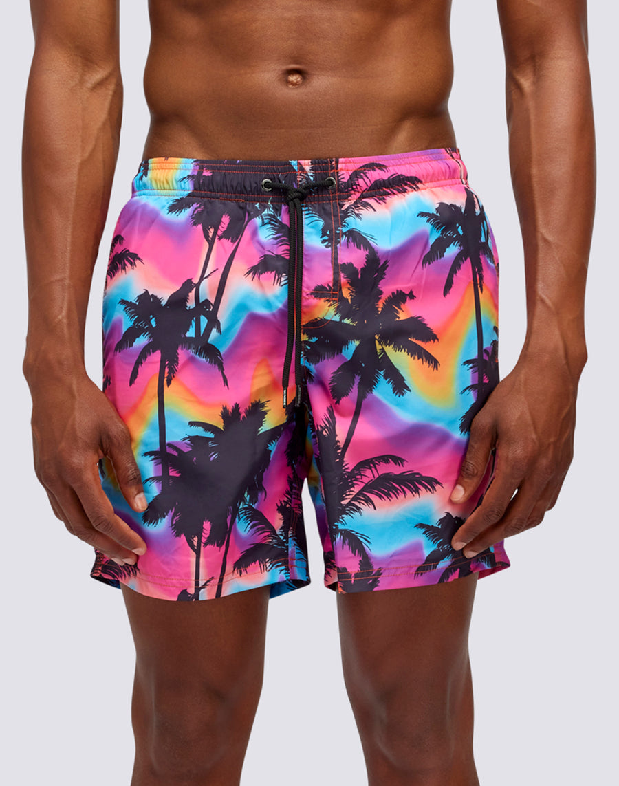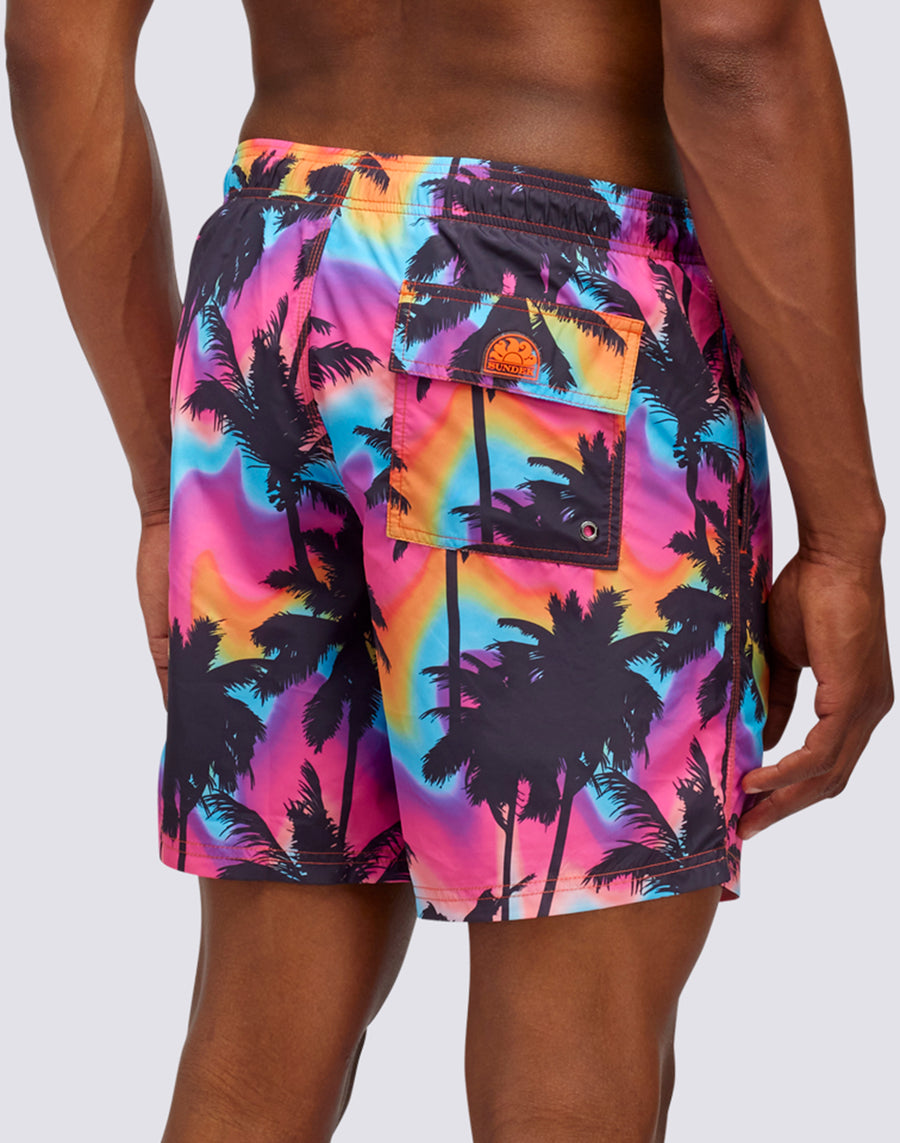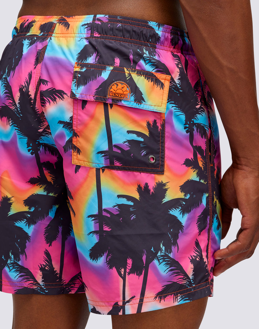 BAÑADOR MEDIANO CON CINTURA ELÁSTICA Y ESTAMPADO DE PALMERAS EN POLIÉSTER RECICLADO