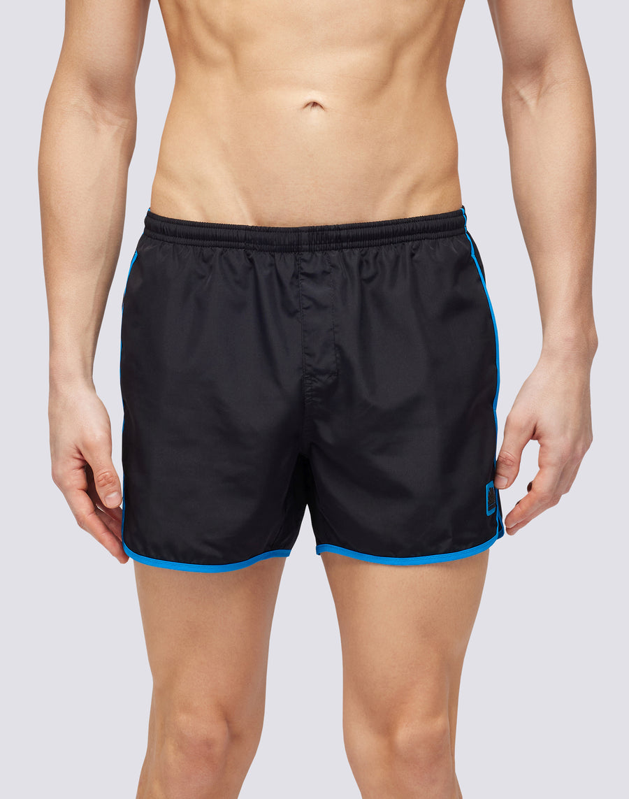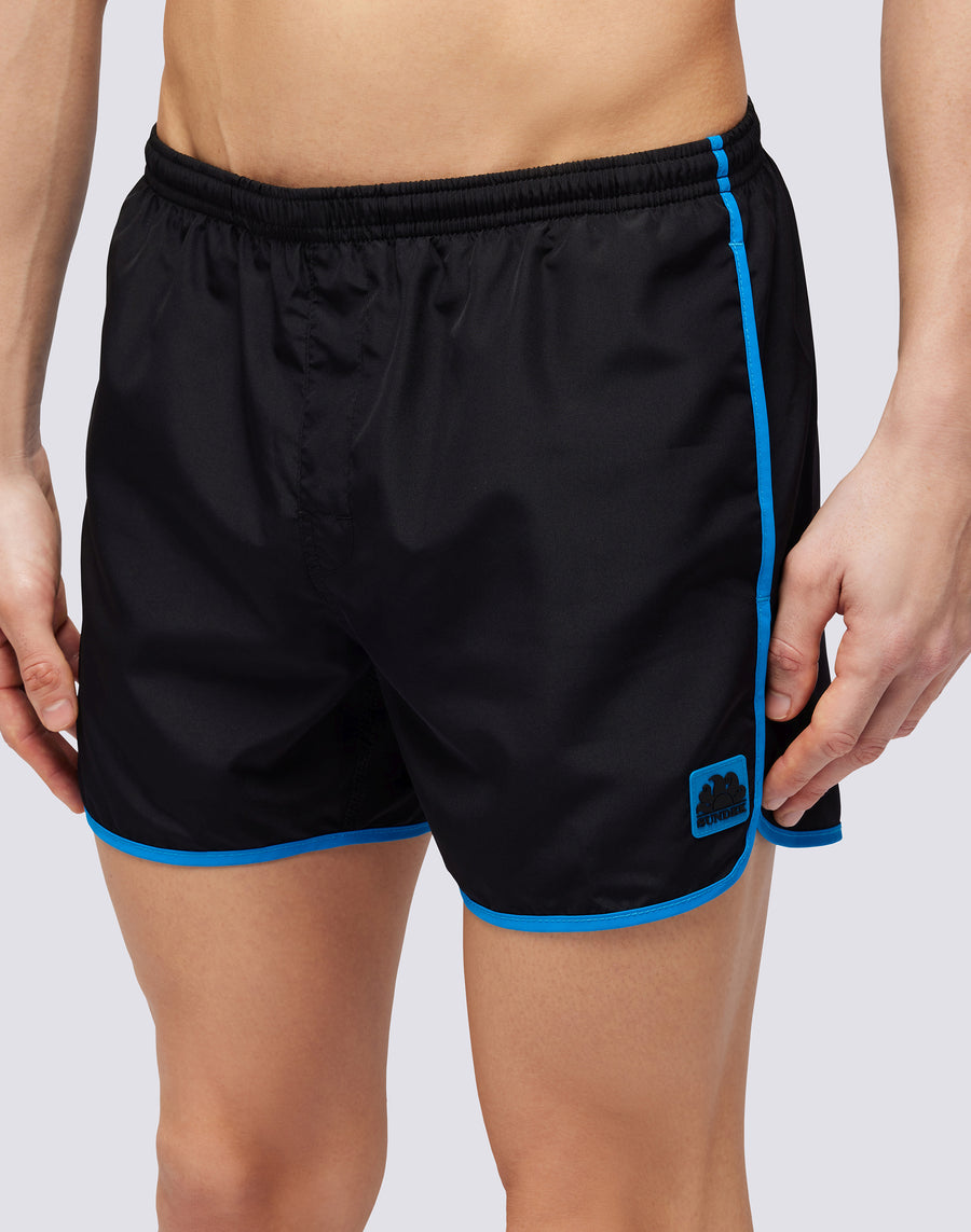 BAÑADOR CORTO CON CINTURA ELÁSTICA Y ABERTURAS LATERALES REDONDAS