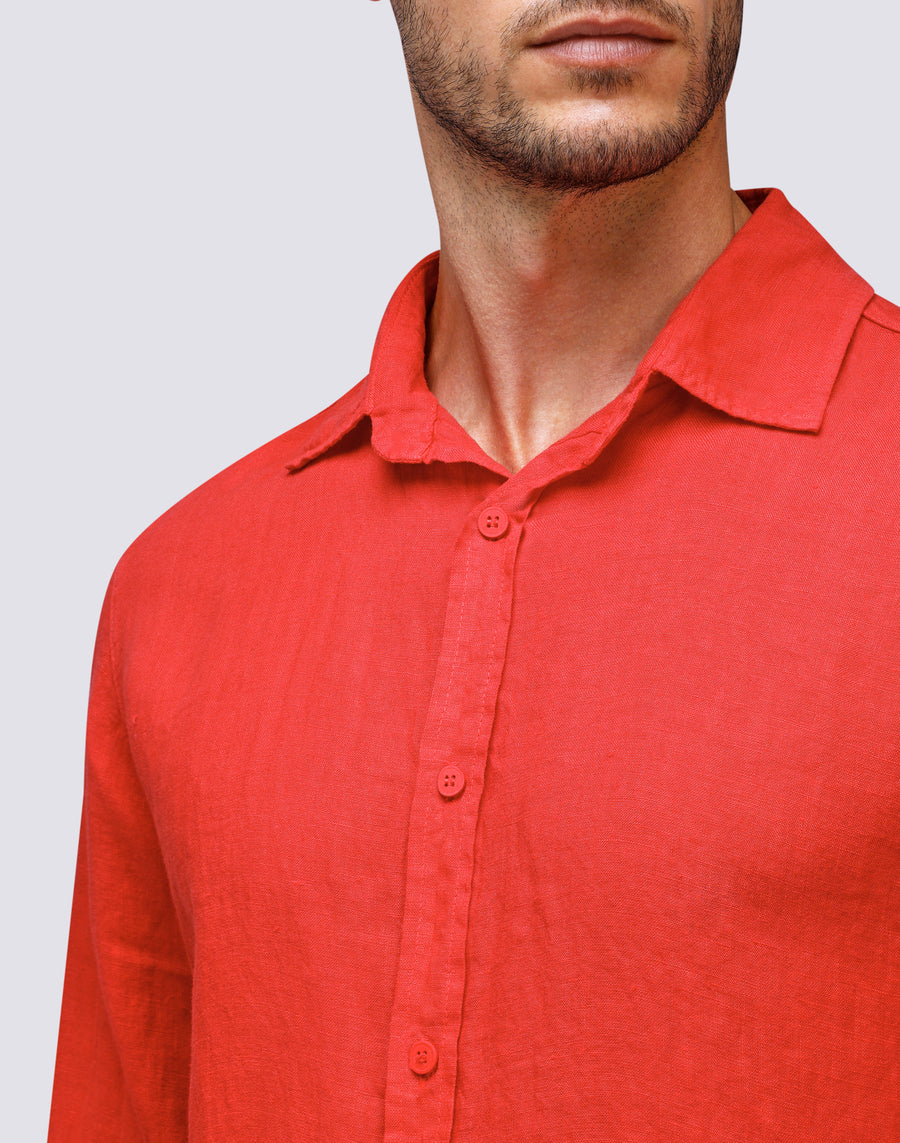 Añade un toque fresco a tu armario de verano con esta camisa de lino para hombre. Confeccionada en lino ligero, es perfecta para mantenerte fresco en los calurosos días de verano.
