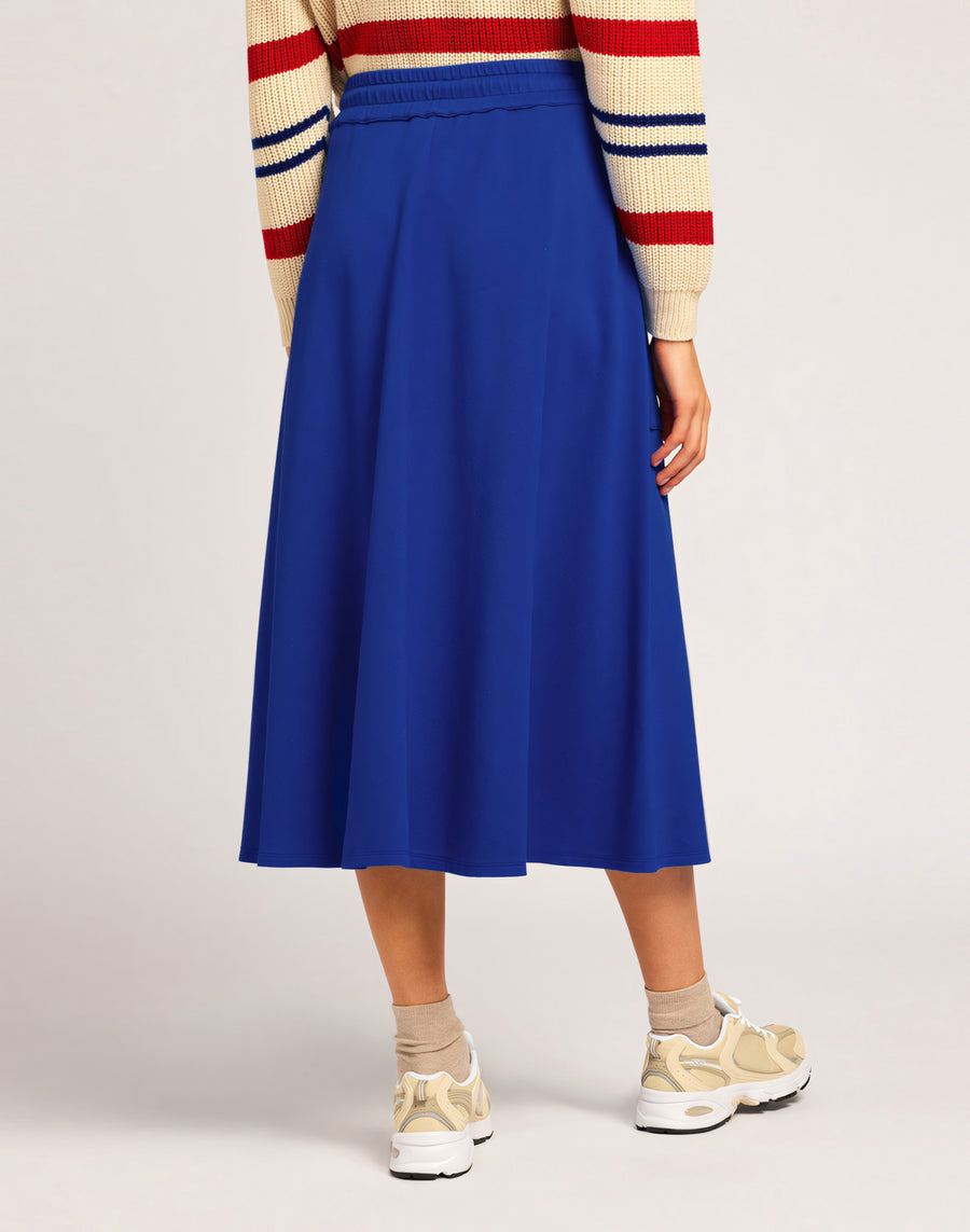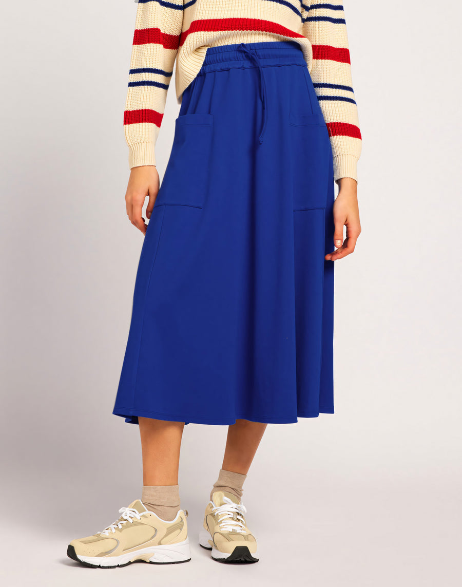 Completa tus looks urbanos con esta falda informal y deportiva. Corte cómodo, acampanado y cintura elástica.