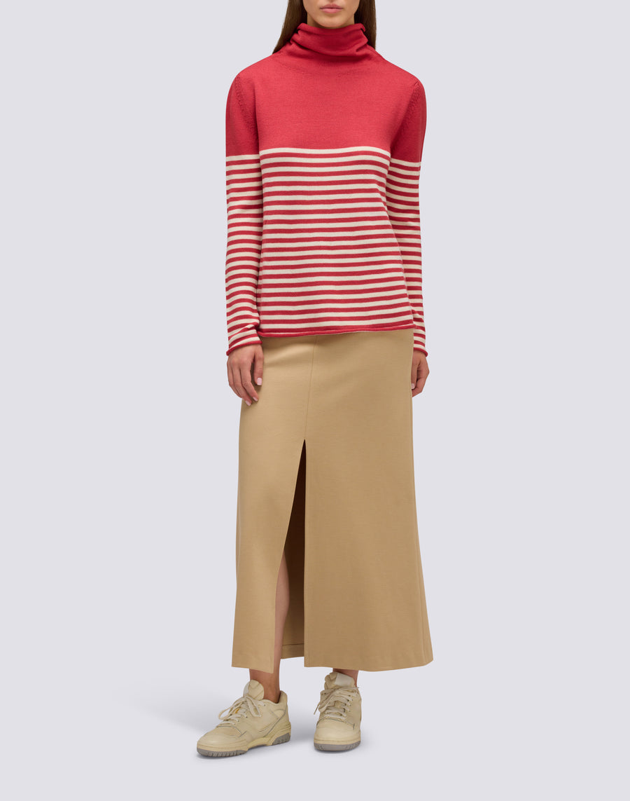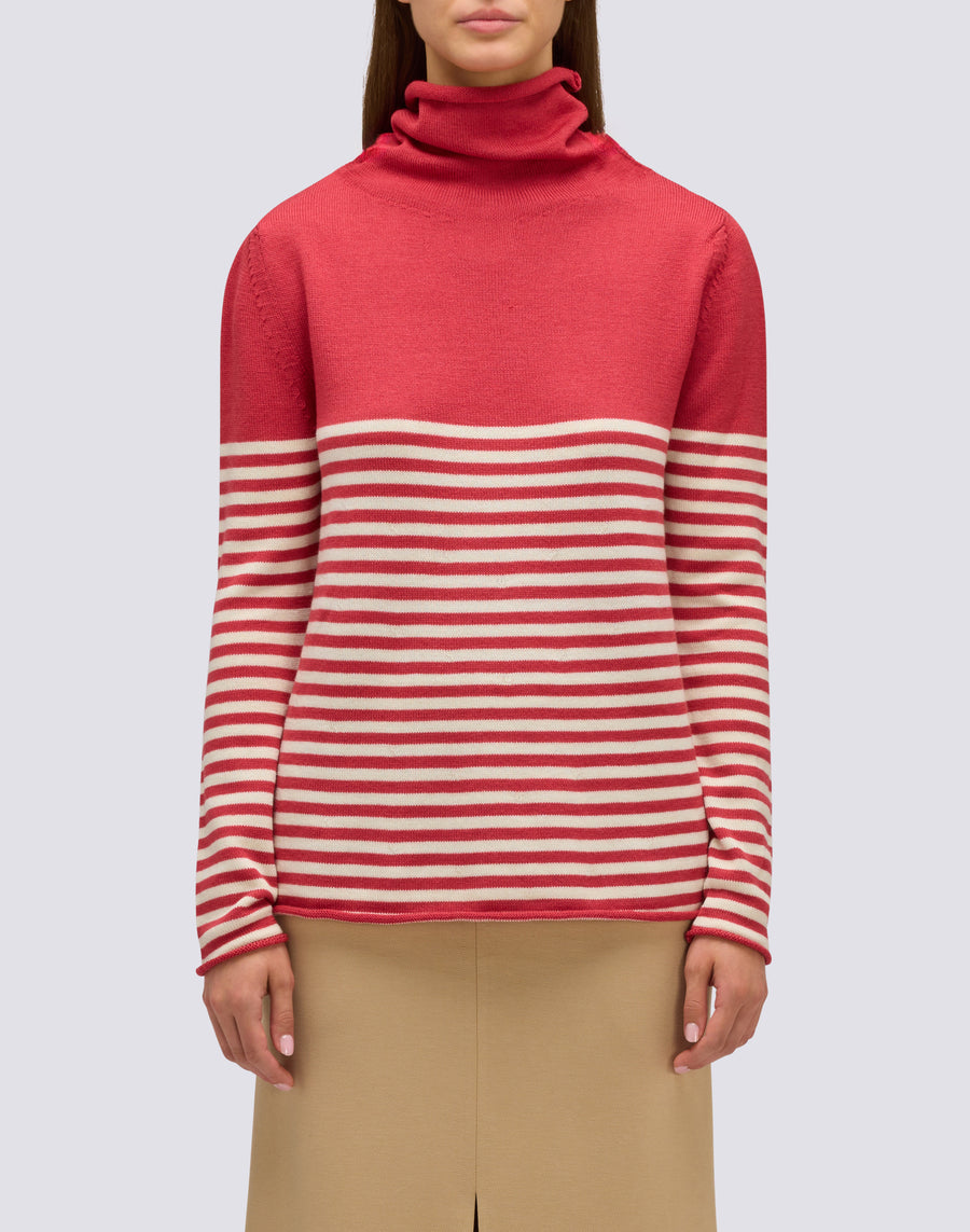 JERSEY DE MUJER CON CUELLO ALTO Y DETALLES DE RAYAS