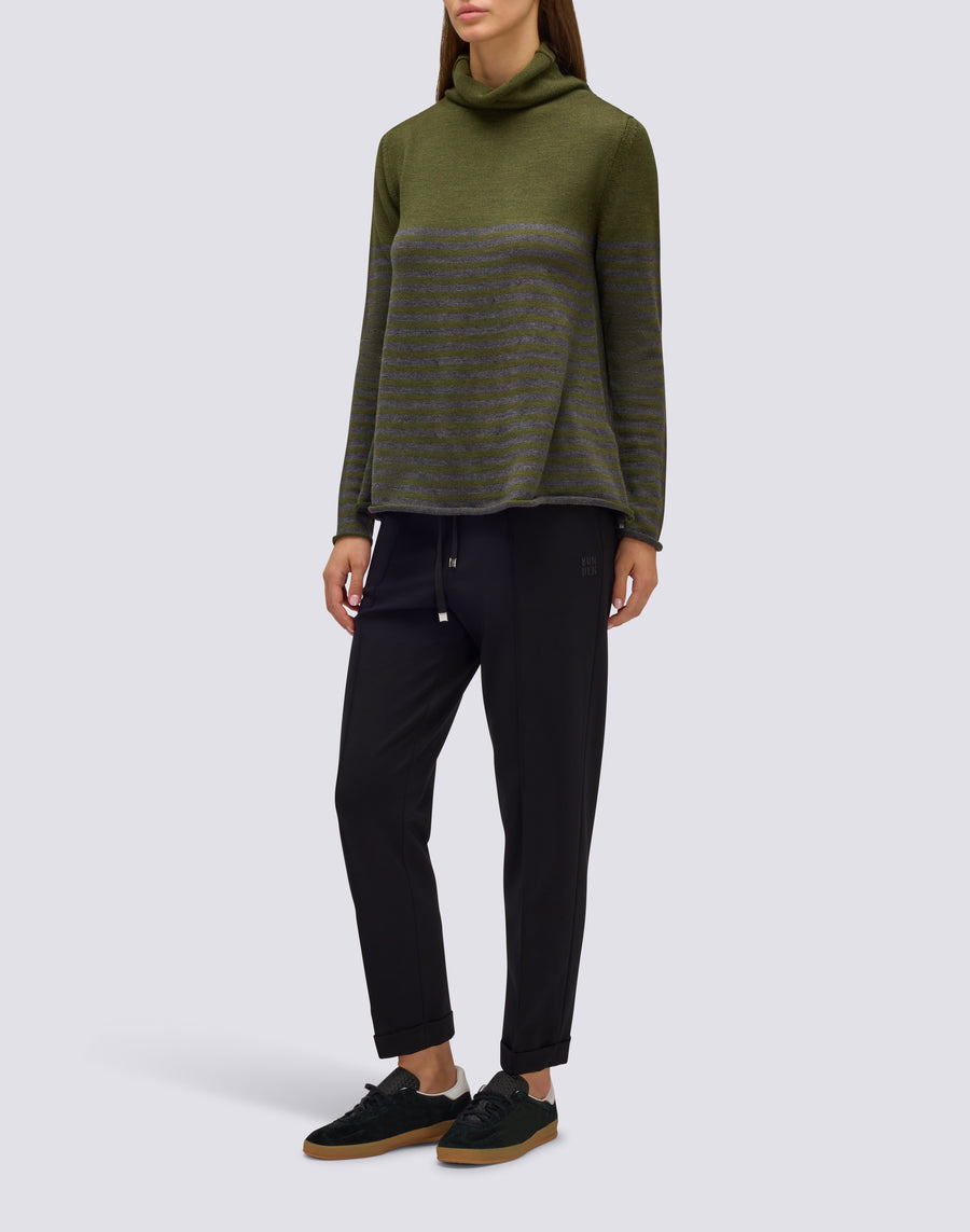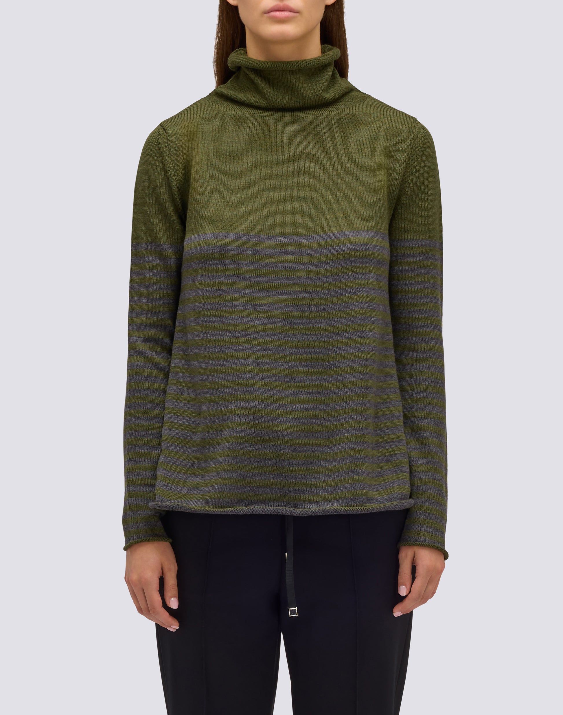 JERSEY DE MUJER CON CUELLO ALTO Y DETALLES DE RAYAS