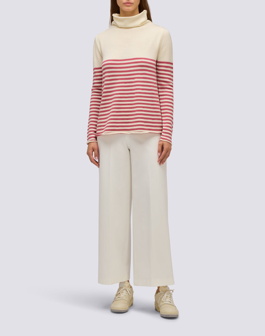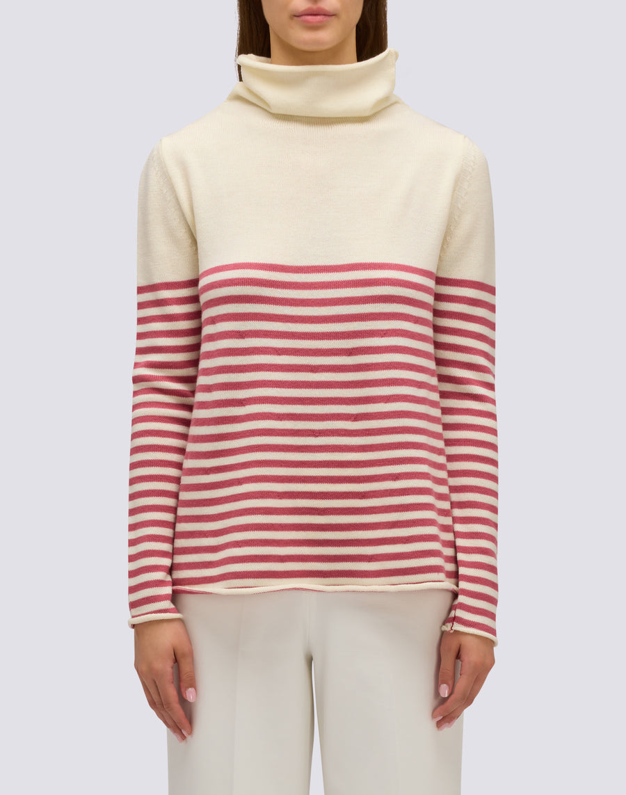 JERSEY DE MUJER CON CUELLO ALTO Y DETALLES DE RAYAS