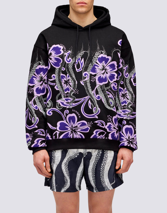 SWEAT-SHIRT À CAPUCHE EN COTON SURTEINT AVEC IMPRIMÉ FLEURI