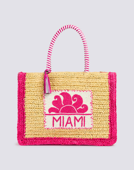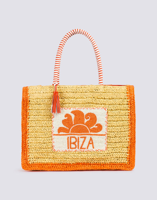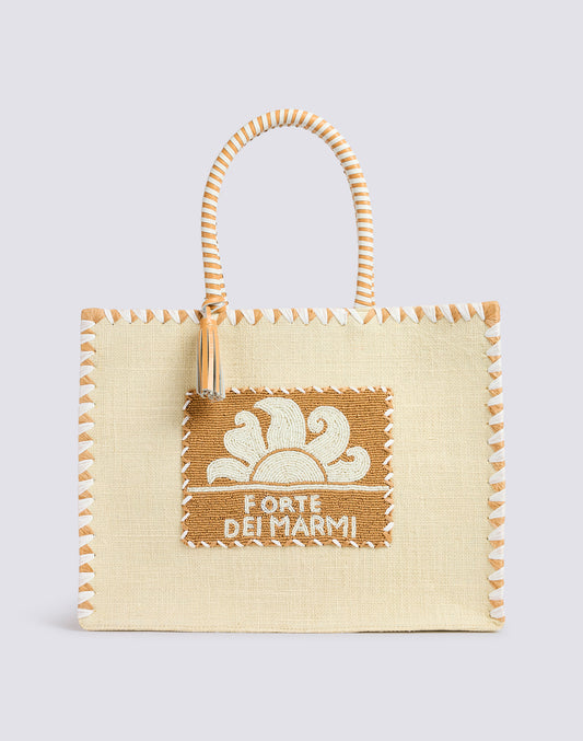 SAC SHOPPING EN RAPHIA AVEC LOGO BRODÉ