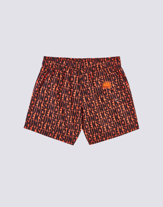 MAILLOT DE BAIN COURT À TAILLE ÉLASTIQUE ET IMPRIMÉ LOGO ORANGE EN POLYESTER RECYCLÉ