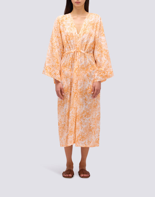 ROBE KIMONO LONGUE IMPRIMÉE FLEUR DE JOIE